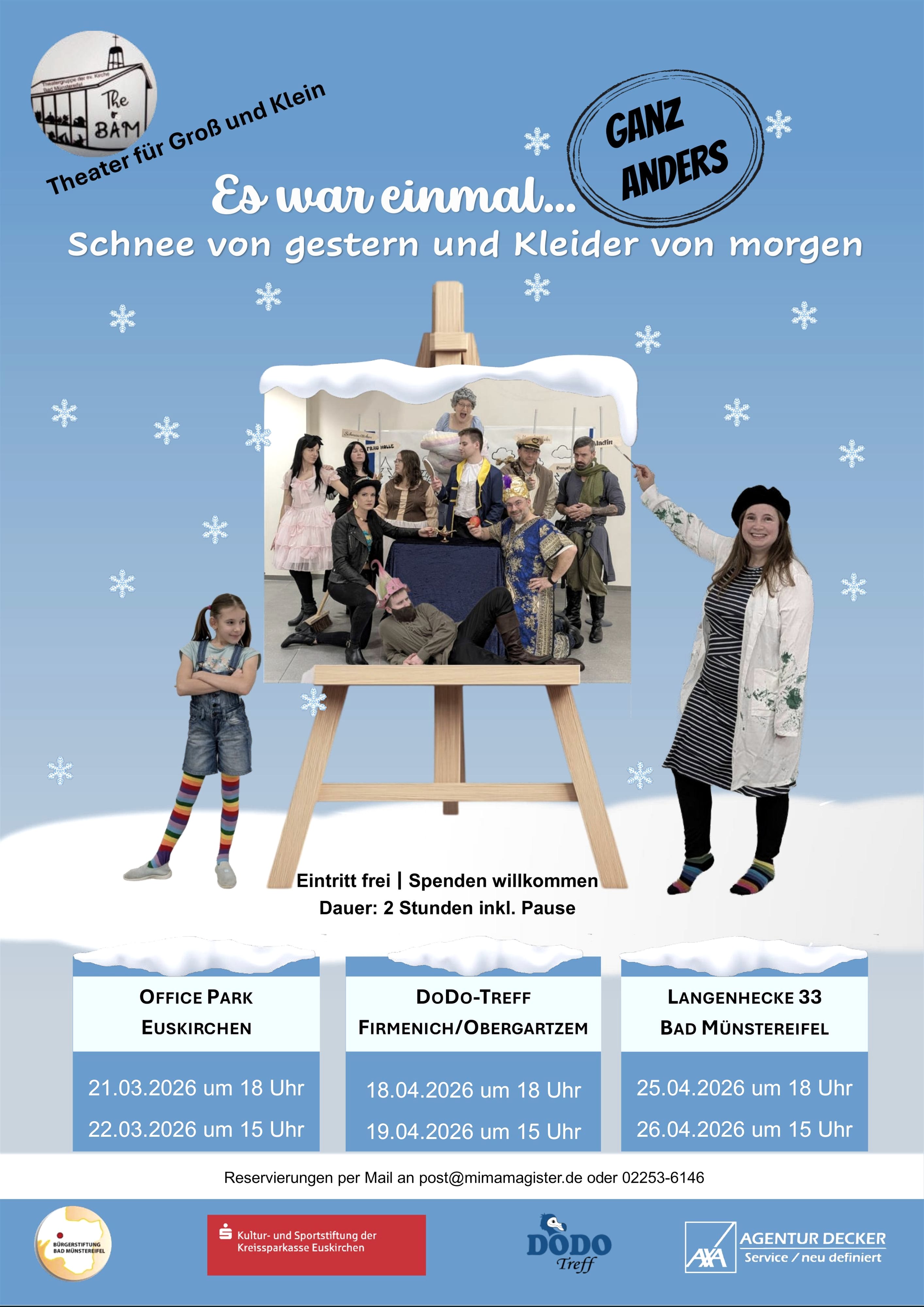 The Bäm, the theater group of the Protestant Church of Bad Münstereifel, is once again performing a fairy tale parody that appeals to adults, teenagers, and primary school children alike. Two hours (including a break) are promised. It will be colorful, wild, and funny.
