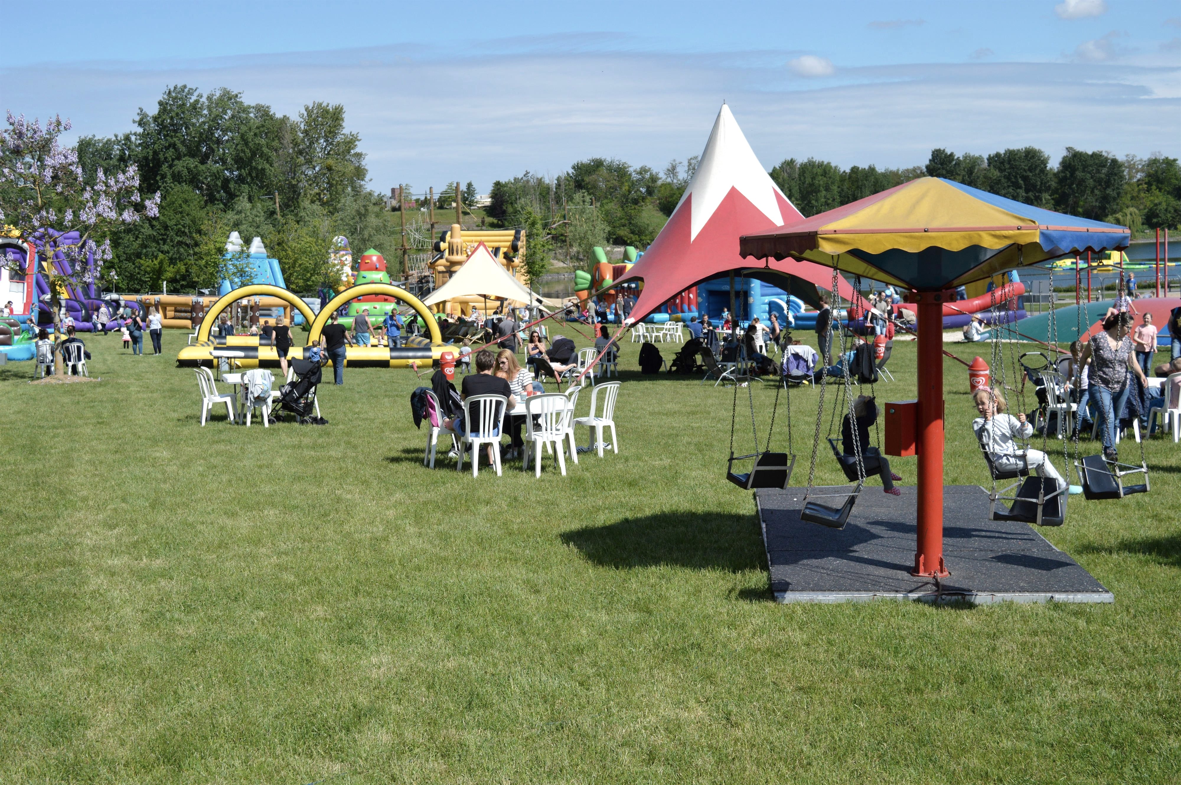 Ein grandioser Spaß für die ganze Familie – denn alle Attraktionen sind für Kinder, Jugendliche und Erwachsene gleichermaßen geeignet! Auf einer extra umzäunten Fläche erleben Sie im Seepark Zülpich ein riesiges Angebot von spektakulären Hüpfattraktionen – von aufblasbaren Actionparcours bis zu einem riesigen Motivburgen. Auch in diesem Jahr werden wieder viele neue Attraktionen geboten. Ein großer Cateringbereich mit Sitzmöglichkeiten bieten genügend Raum für erholsame Pausen. An beiden Sonntagen sowie am Feiertag des 1. Mai wird zusätzlich eine Kinderschminkerin im Park unterwegs sein.