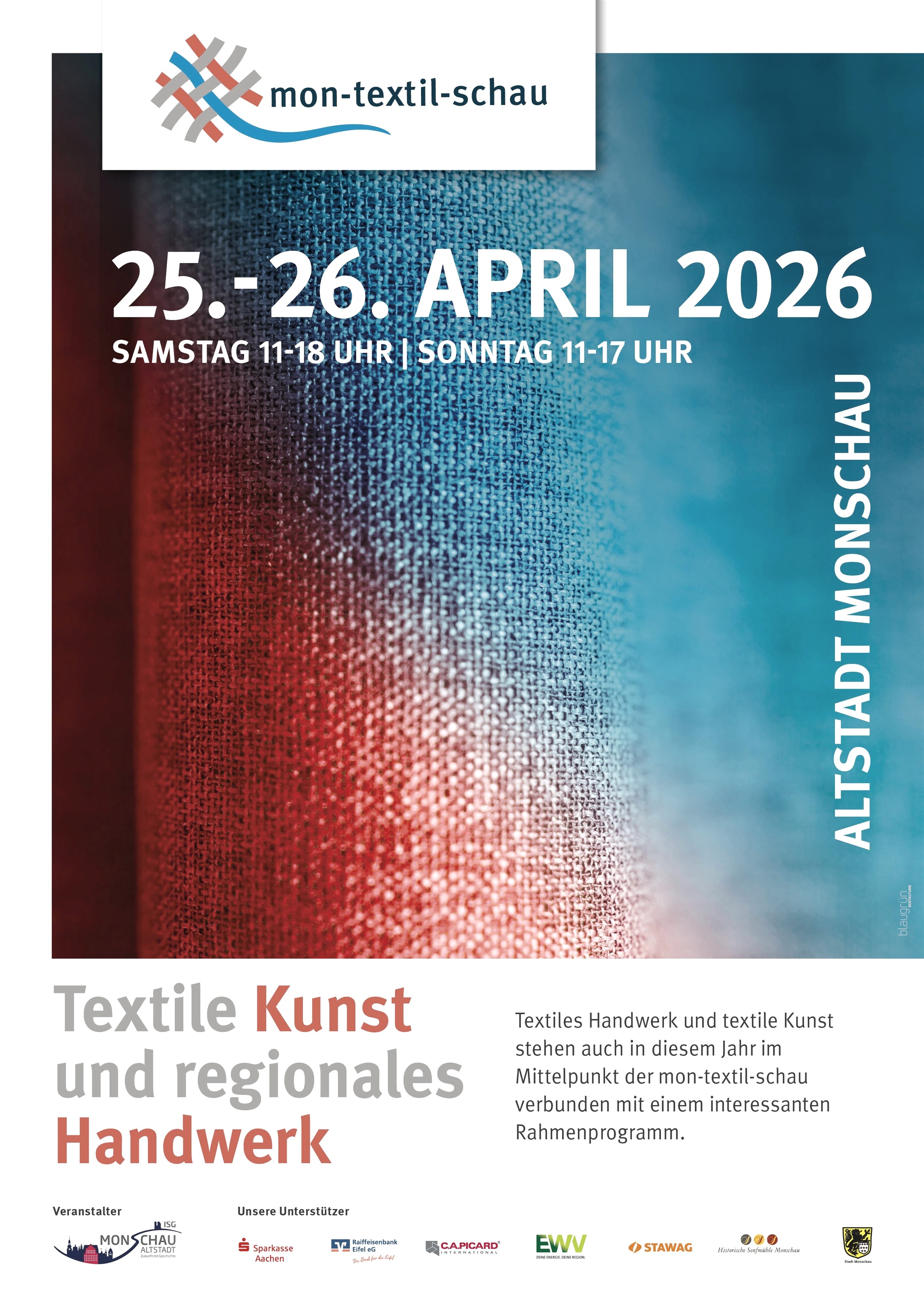 Textiles Handwerk und textile Kunst stehen auch in diesem Jahr im Mittelpunkt der mon-textil-schau verbunden mit einem interessanten Rahmenprogramm.