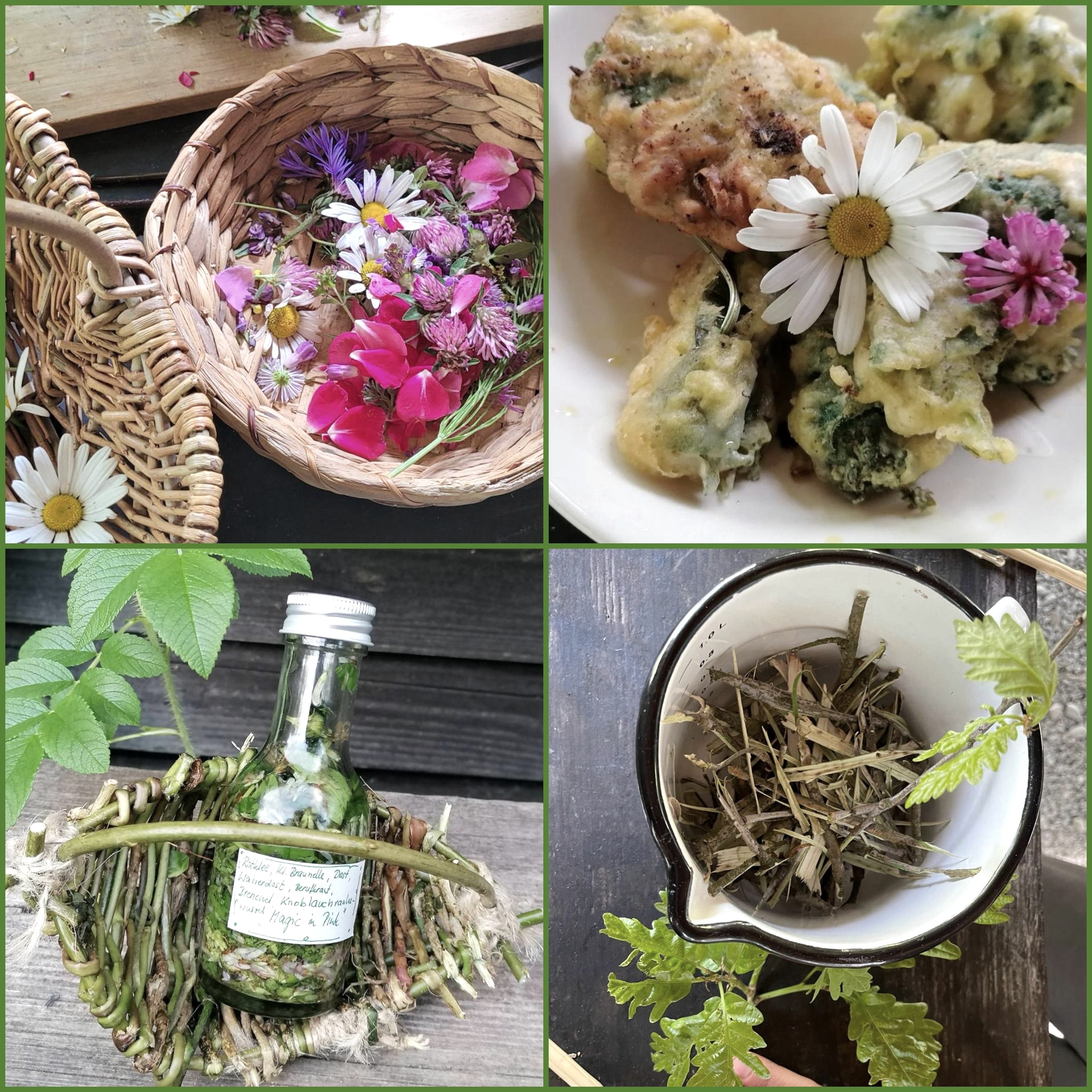 Neben der Wildkräuterküche werden wir auch Cremes, Salben und Tinkturen, Essenzen und Tees herstellen und uns mit weiteren Verwendungs- und Verarbeitungsmöglichkeiten von Pflanzen und Pflanzenteilen, z.B. Herstellung von Gefäßen und einfachen Körben beschäftigen.