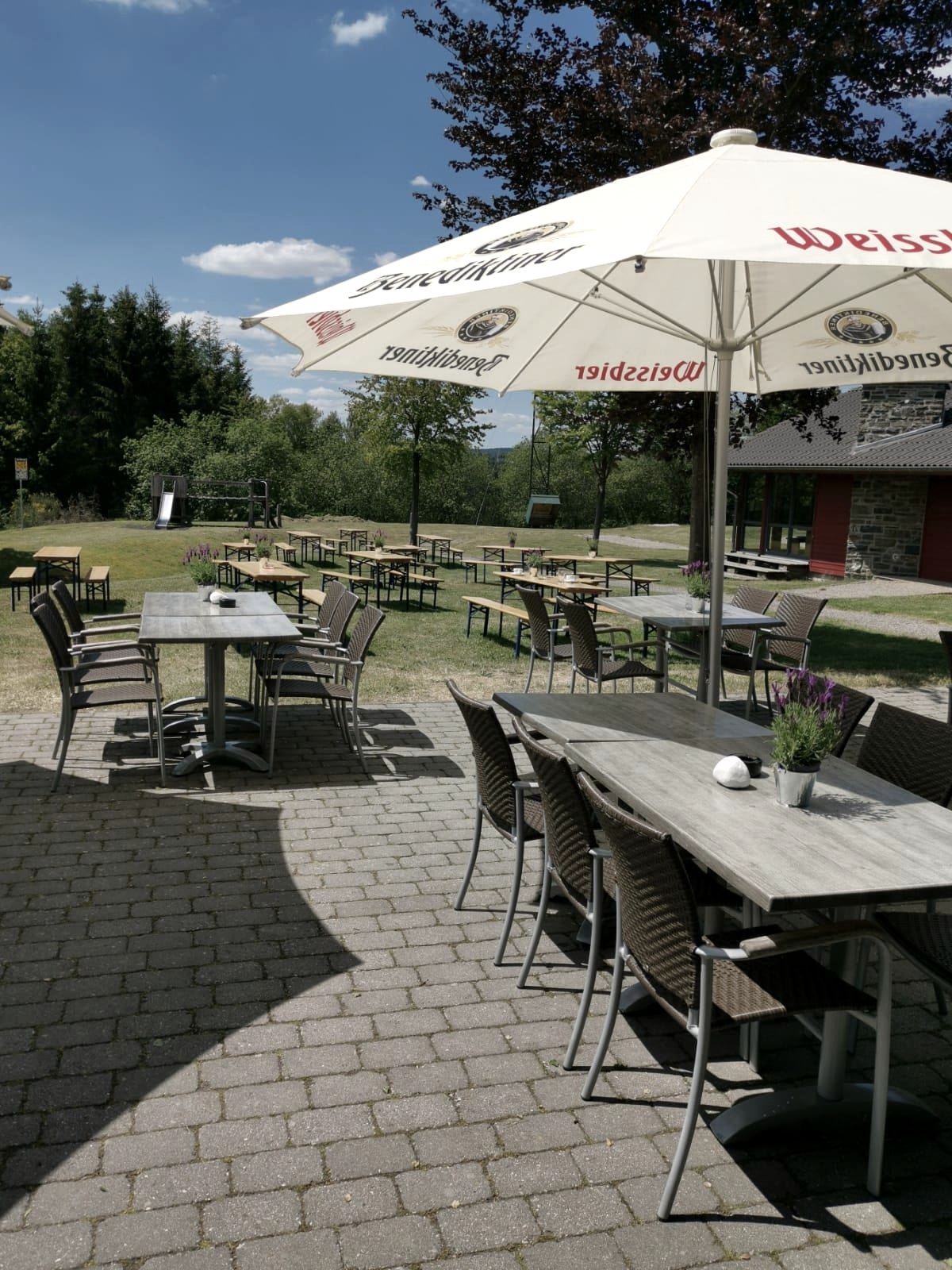 In unserem Innenbereich finden bis zu 60 Personen Platz. Der schöne Außenbereich mit Kinderspielplatz (100 Sitzplätze) lädt zum Verweilen ein.