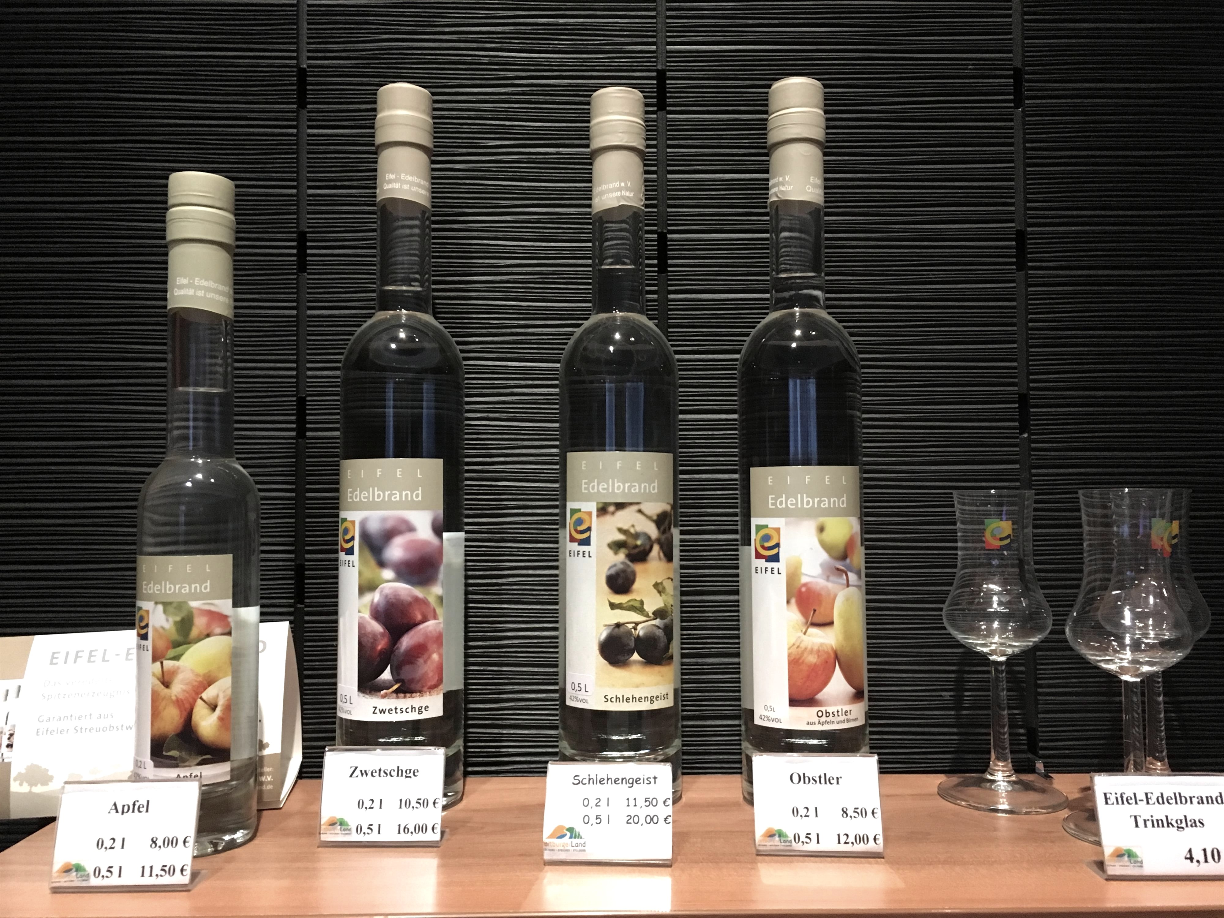 Obst ist nicht nur zum Essen da. Das lernt man bei der Besichtigung von einer der 200 Schnapsbrennereien in der Südeifel! Ein Fachmann verrät das Geheimnis der Eifeler Brände - bei einer Führung durch die Brennerei. Nach dem Abfüllraum, wo der Alkohol auf Trinkstärke heruntergesetzt wird, gelangt man in die gemütliche Probierstube. Hier kann man die hochprozentigen Wässerchen verkosten und dazu eifeltypische Speisen genießen.