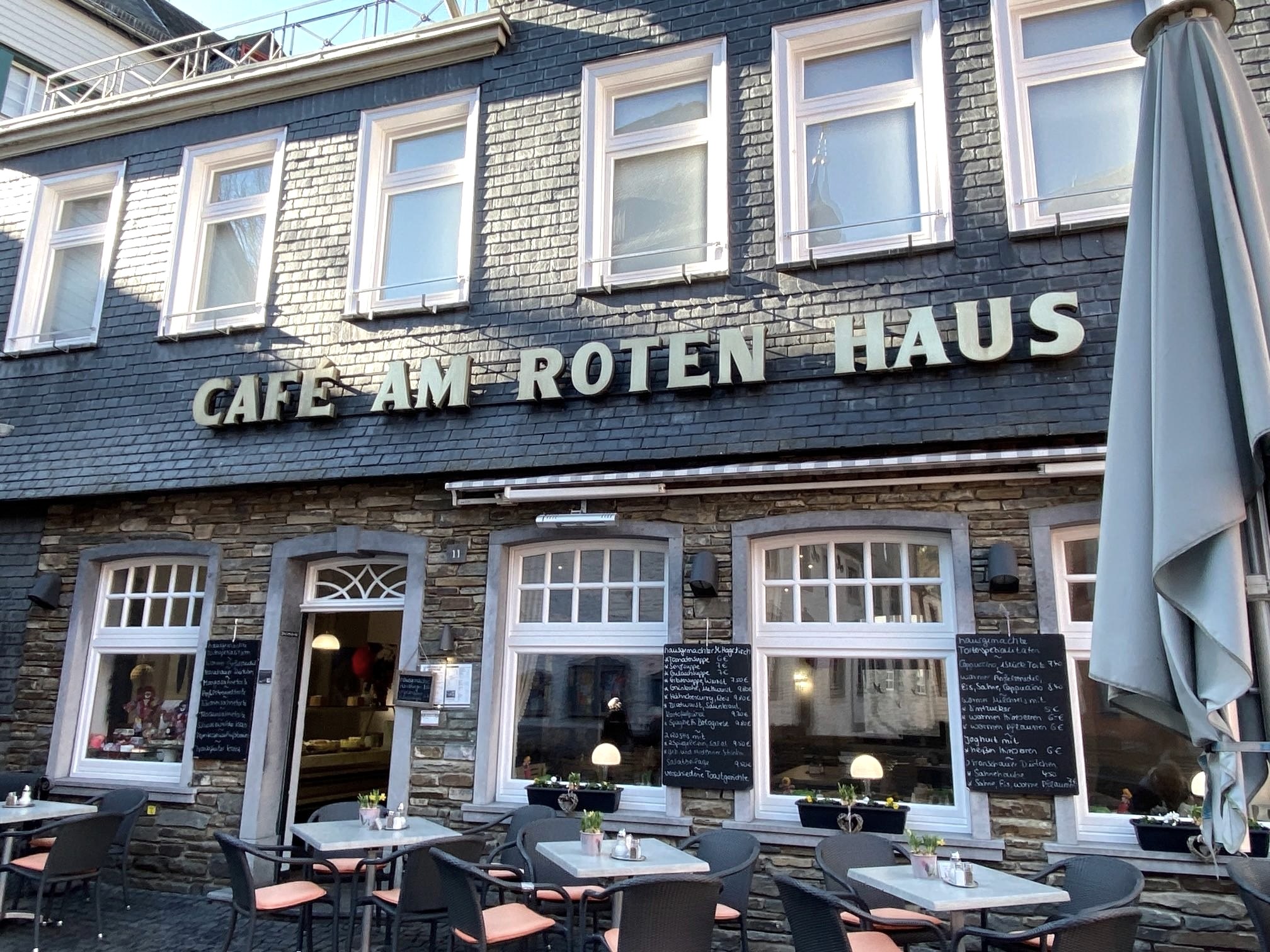 Wir , das Café Am Roten Haus in Monschau, sind eine kleine Konditorei mit hauseigener Backstube und direkten wunderschönen Blick auf das Rote Haus.