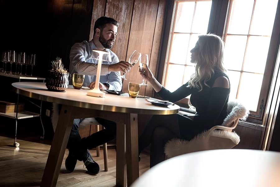 Nach über zwanzig Jahren erfolgreicher Arbeit an der Gourmetfront mit dem Husarenquartier schlossen Jutta und Herbert Brockel ihr Restaurant in Erftstadt Ende Mai 2017, blieben aber nicht lange untätig: Gemeinsam mit Daniela und Tobias Schlimbach übernahmen sie rund 25 Kilometer südwestlich der alten Wirkungsstätte, nämlich am Rande der Eifel, schon bald die Gastronomie auf Burg Nideggen, wo neben dem ebenfalls ambitioniert bekochten Restaurant Kaiserblick im Frühsommer nun auch das nach den beiden Geschäftsführern und Küchenchefs benannte Gourmetrestaurant eröffnet hat. Das von viel dunklem Holz, einem Kachelofen und Erkerfenstern geprägte „Jülicher Zimmer“ wurde mit stylischem weißem Interieur sehr ansprechend kontrastiert, wie überhaupt moderne Akzente visueller (Designer-Möbel und -Accessoires) und sogar auditiver Art (Vogelgezwitscher) sowie frivole Kunst das monumentale Burggemäuer attraktiv auflockern.