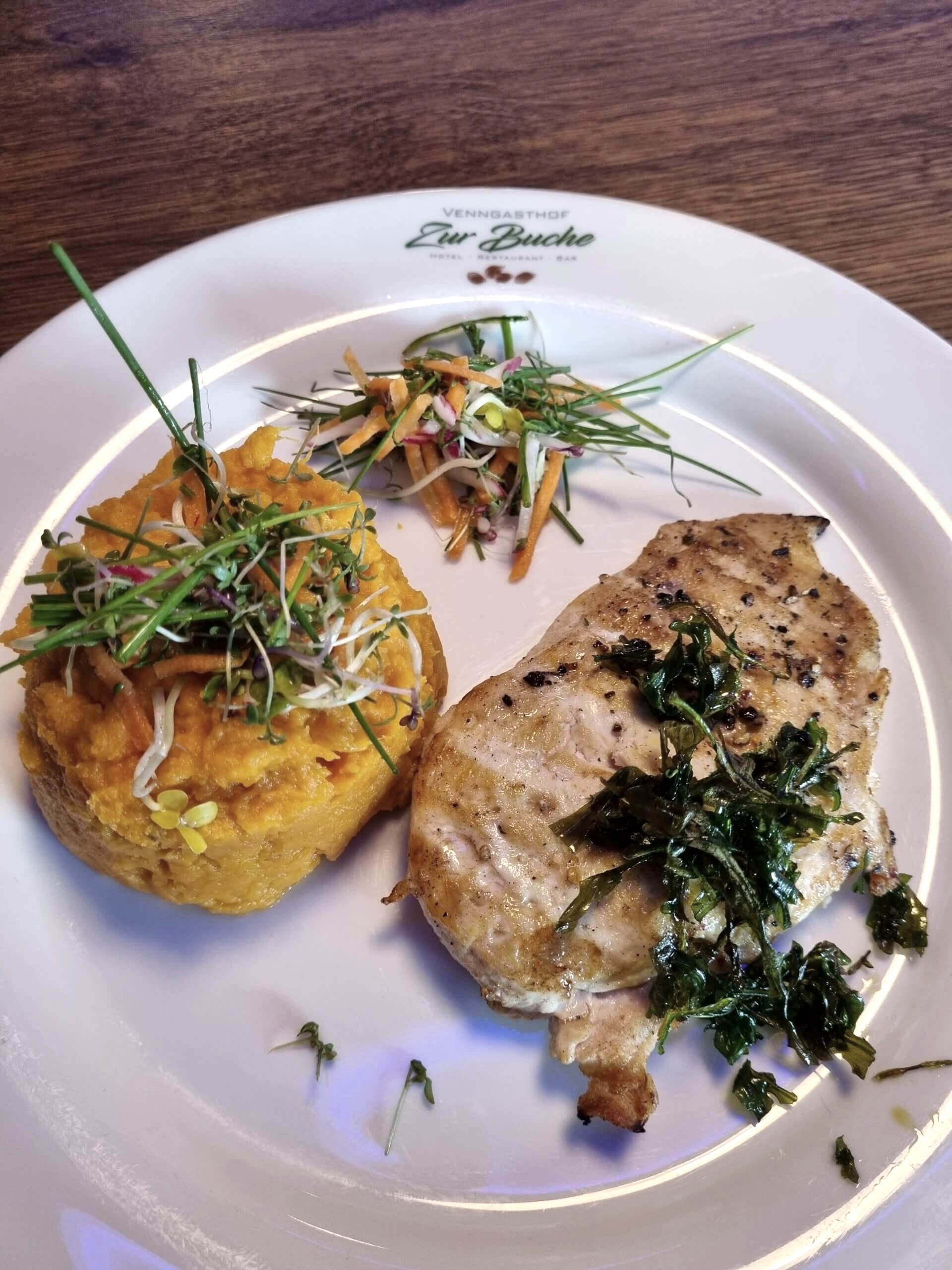 Übrigens: Bei uns kann man auch übernachten. Der Venngasthof Zur Buche hat 4 hochwertig renovierte Doppelzimmer in unserem Hause untergebracht."