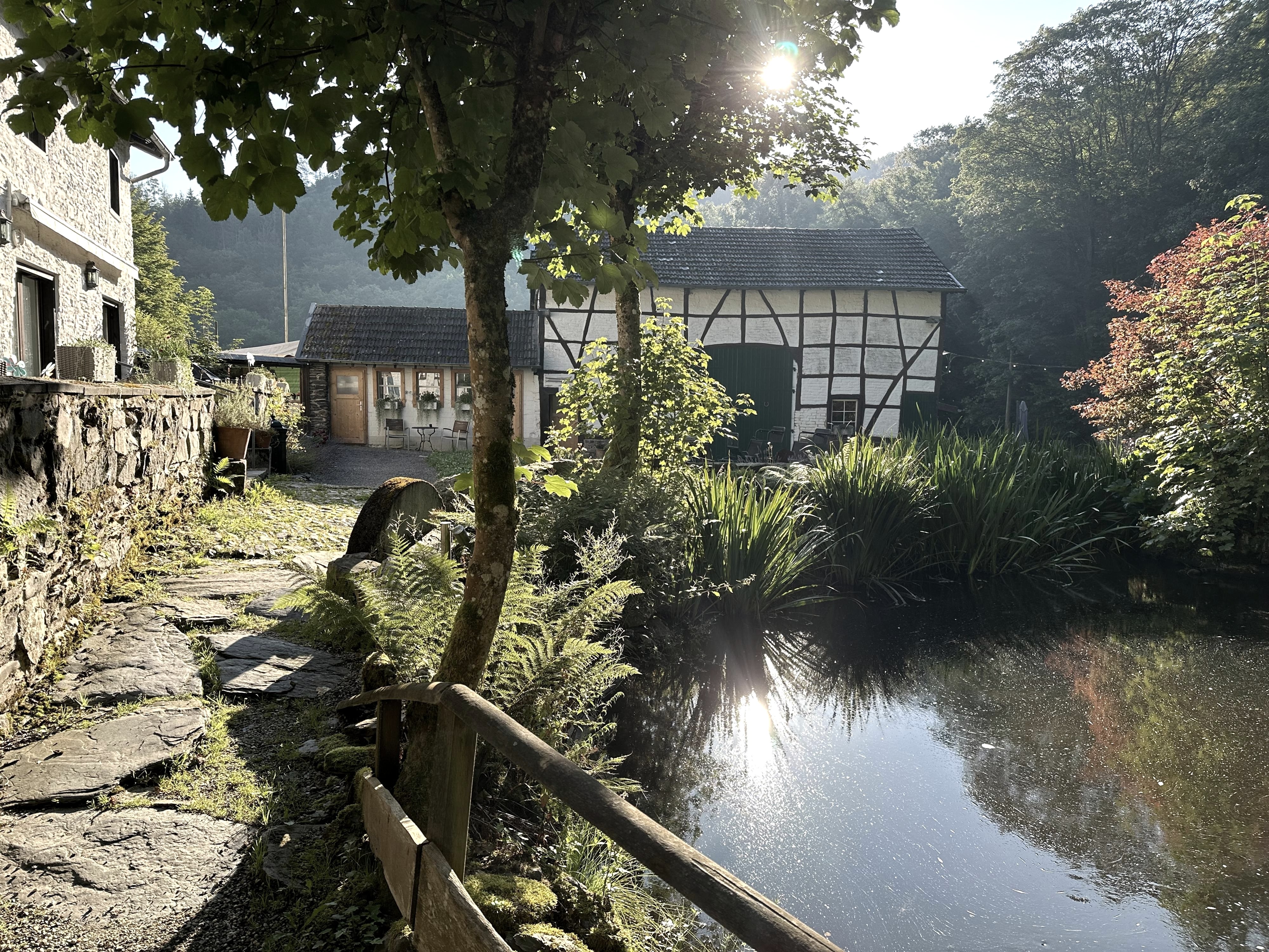 Die Mestrenger Mühle liegt idyllisch an der Kall zwischen Vossenack und Schmidt. Das Waldcafé setzt auf Regionalität und Nachhaltigkeit. Neben selbstgebackenen Kuchen werden im Biergarten auch Spezialitäten vom Grill und herzhafte Speisen aus der Küche angeboten.