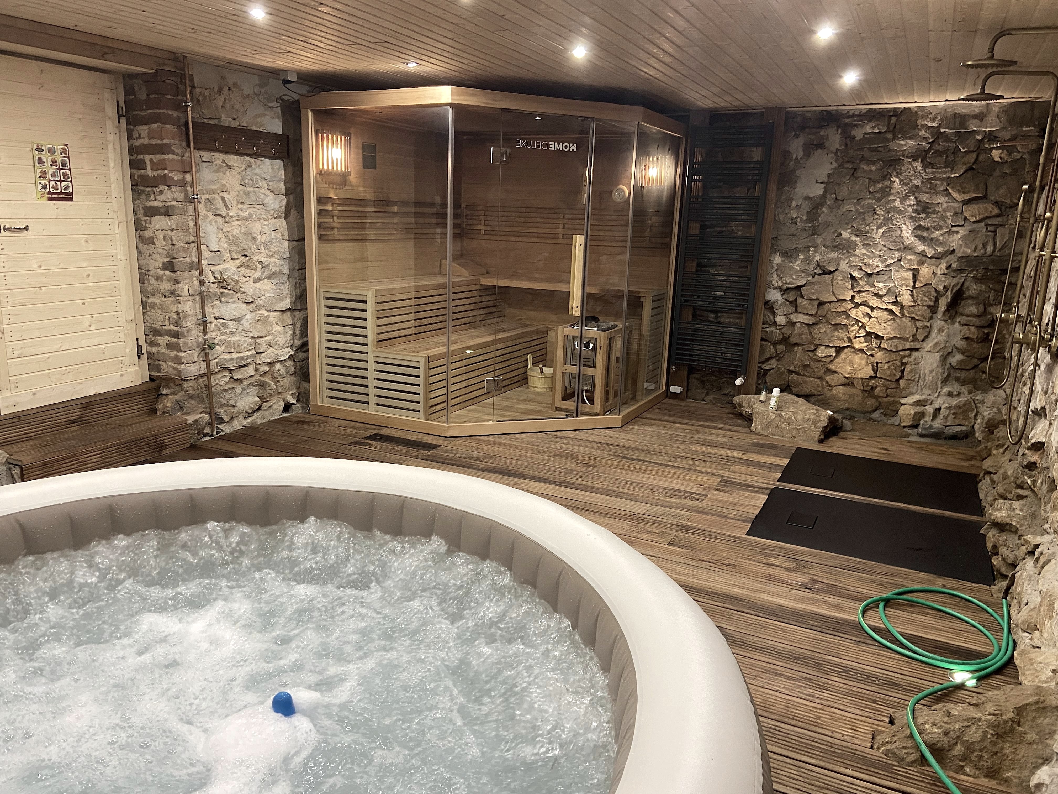 Im Dezember 2021 haben wir unsere neue Saunalandschaft für alle Gäste des Posthalterhofs eröffnet. In unserem großen Garten gibt es einen im Fels eingebundenen, ca. 500 Jahre alten Gewölbekeller. Hier können unsere Gäste in außergewöhnlicher Atmosphäre in der Sauna und im Whirlpool relaxen - für bis zu 6 Personen. Und im sichtgeschützen Außenbereich in der überdachten Lounge Ecke mit Wärmeflamme Musik hören und den grandiosen Blick auf die Burg Blankenheim genießen. Die Nutzung des Wellness Bereiches ist kostenlos und kann für ein paar Stunden am Tag von unseren Gästen gebucht werden.