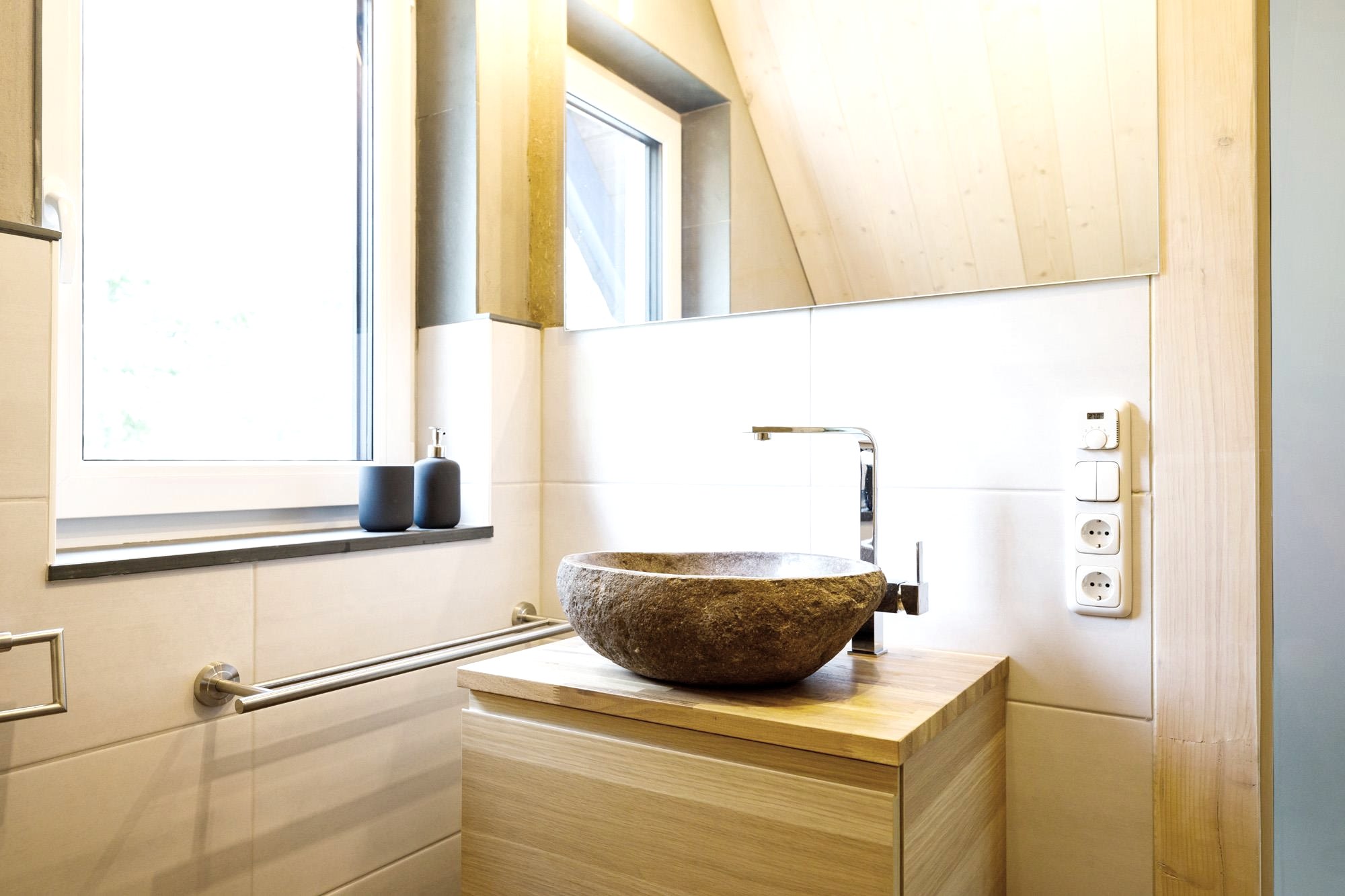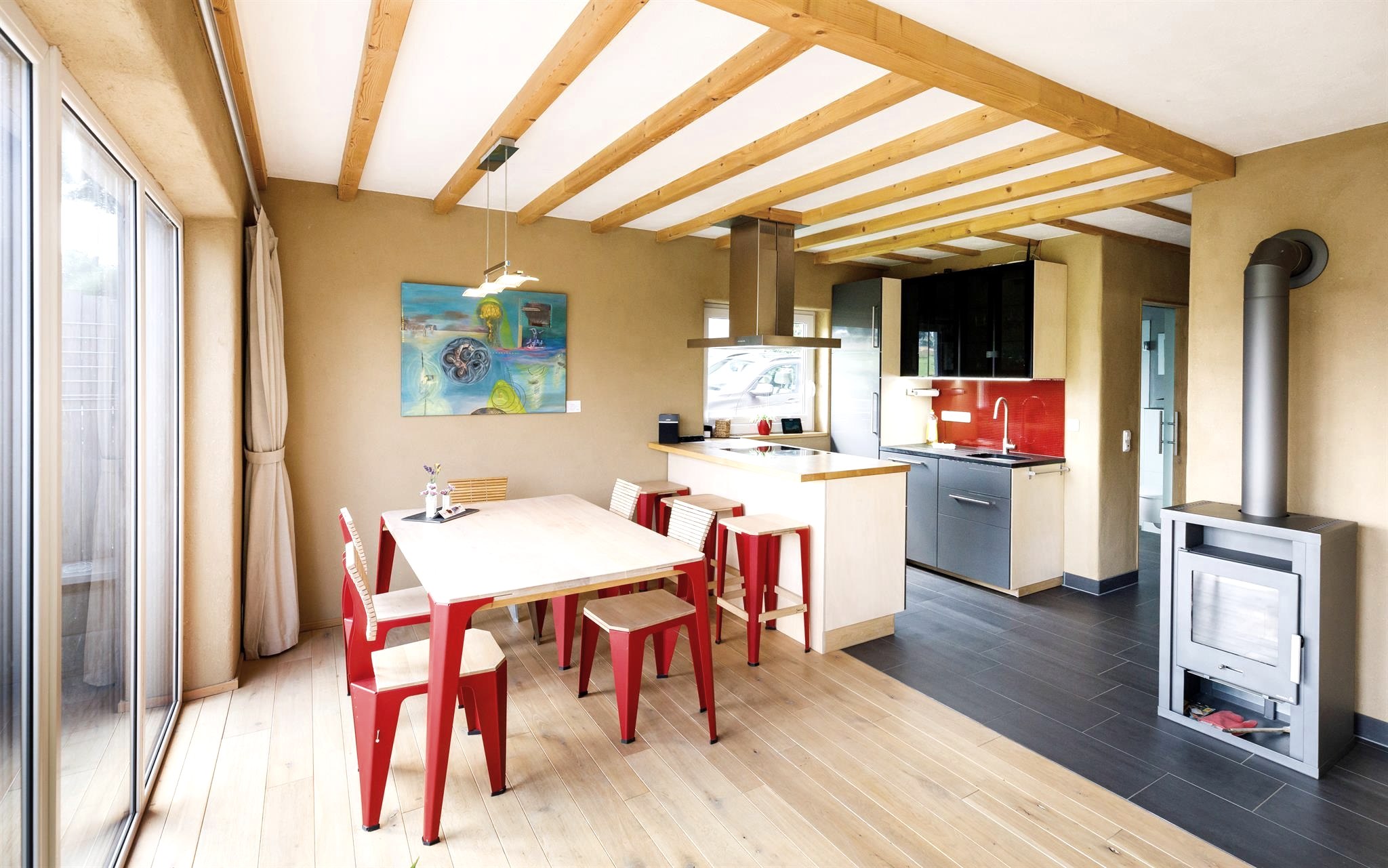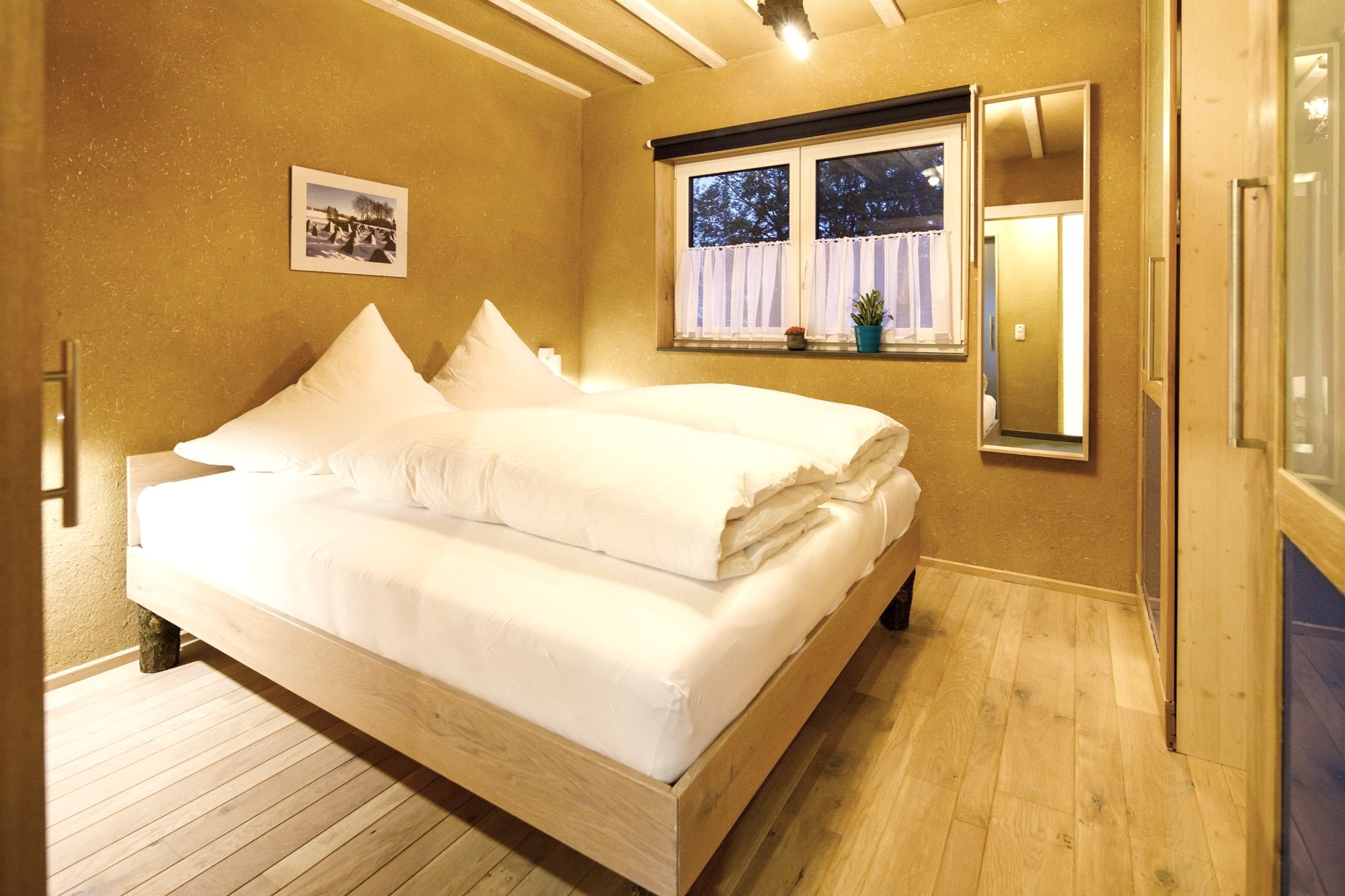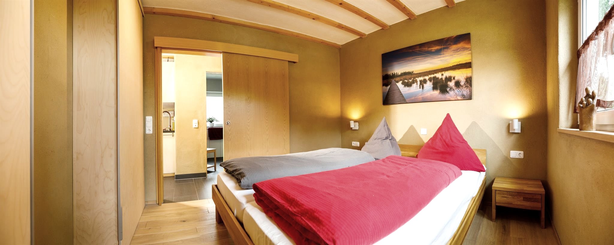 Gesundes Raumklima, warme Atmosphäre (Lehmputz und Naturmaterialien, allergiker-/ behindertenfreundlich)