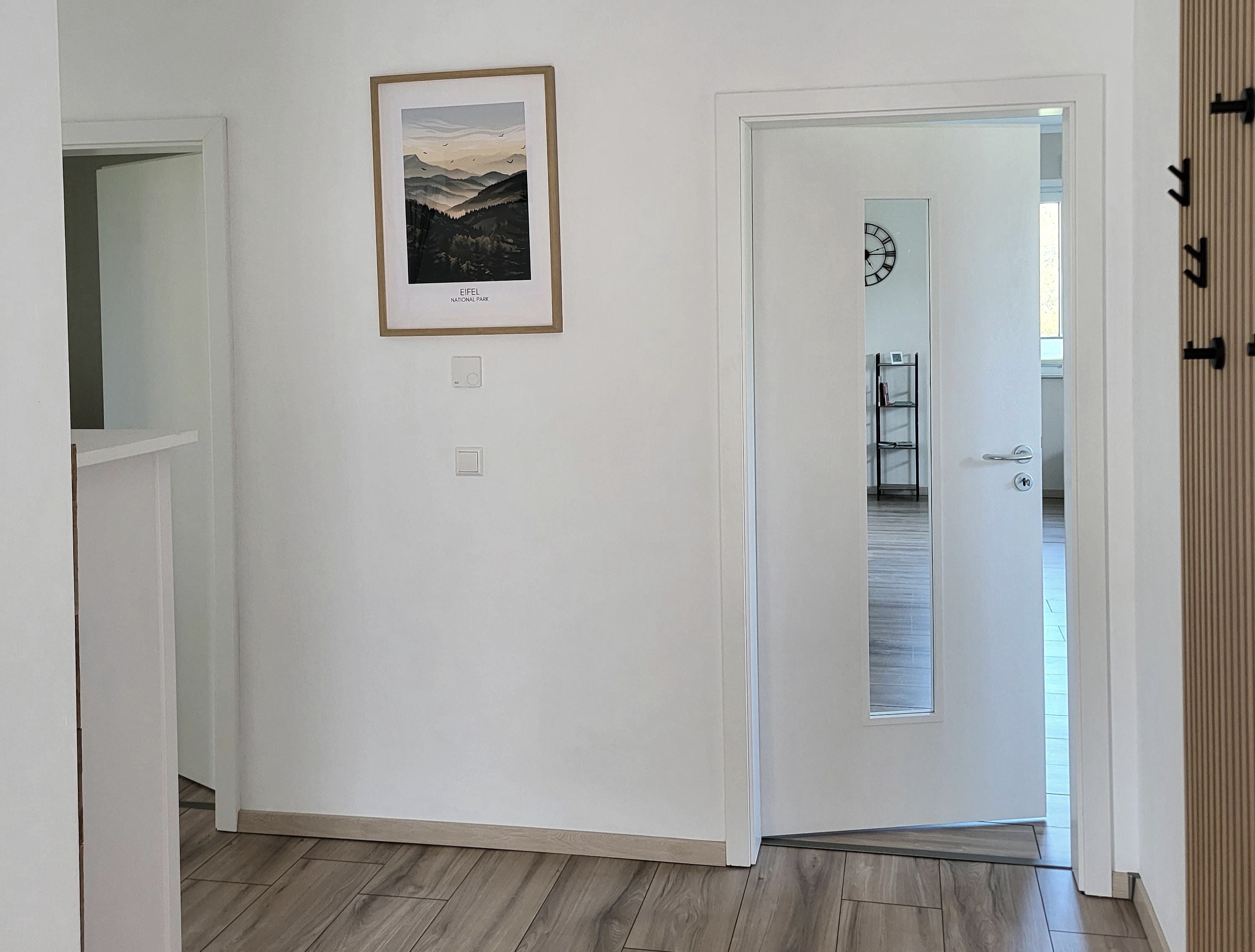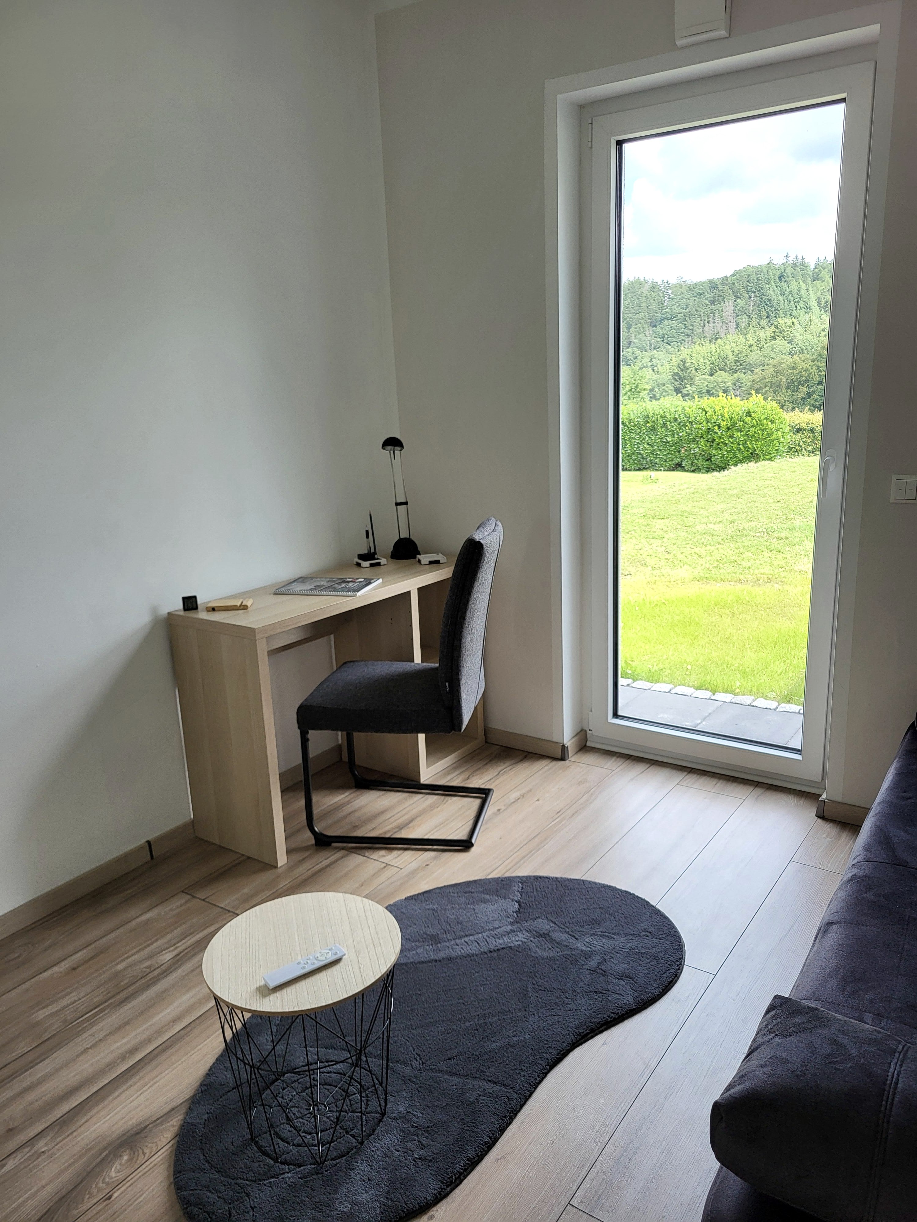 Das moderne, ruhige und freistehende Ferienhaus liegt unmittelbar an ausgewiesenen Wander- und Fahrradwegen. Vom Ferienhaus genießen Sie den Blick auf die bewaldeten Hügel des Nationalparks Eifel.