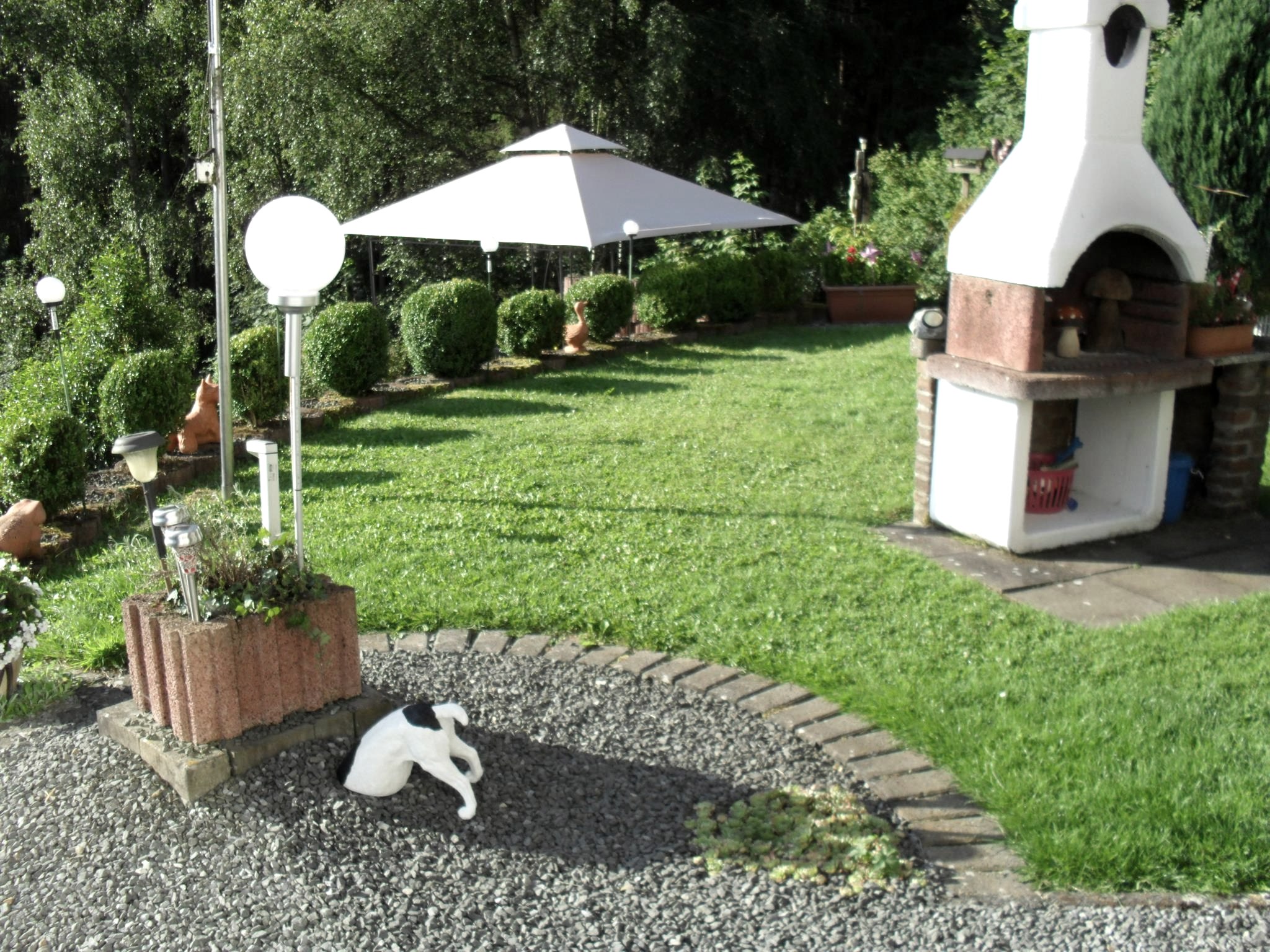 Großes eingezäuntes Grundstück , Hundedecken, Spielzeug, Näpfe, Hundeliege, Kotbeutel...vorhanden