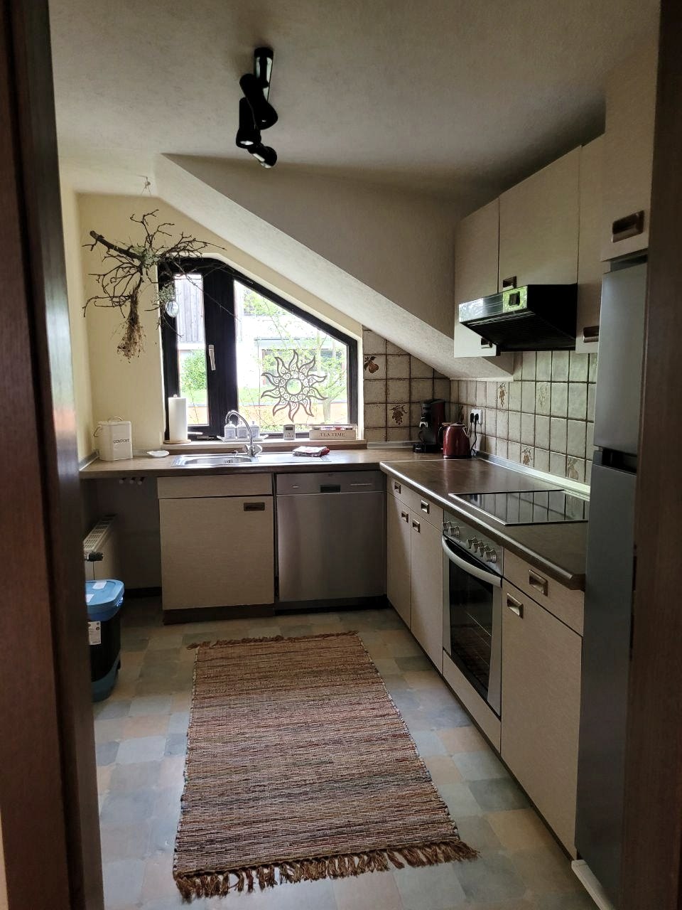 Die Dachgeschoßwohnung ist über zwei Etagen zu erreichen und befindet sich in dem von uns selbst bewohnten Haus. Hier leben wir, Uli und Birgit, mit unseren zwei Katzen und einem kleinen Hund.