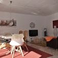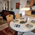 • offener, großzügiger Wohnbereich mit Sofa und Flachbildfernseher, Küche mit Esstisch für 6 Personen