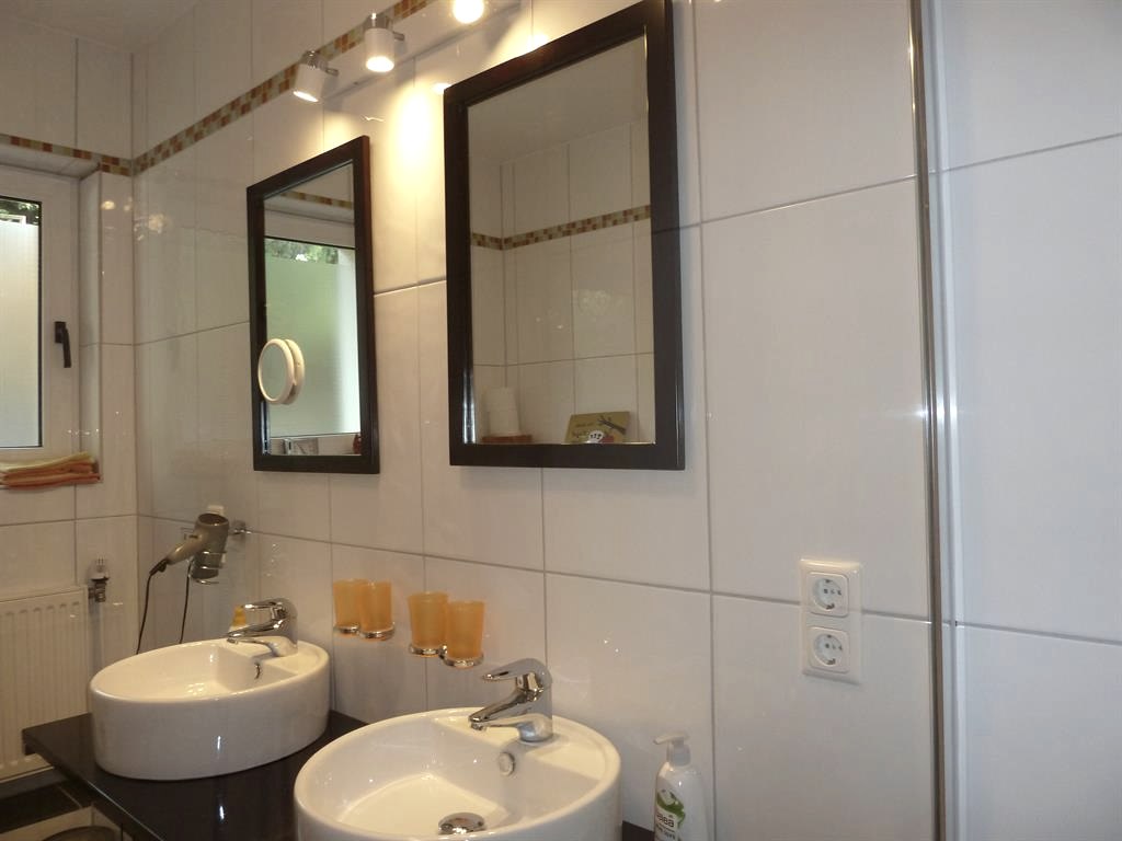 Das ganze Haus ist hell und freundlich eingerichtet. 6 Doppelzimmer, 3 Duschbäder mit WC+ 1 sep. WC. Ein Wohnzimmer mit 3 Ledersofas und Kamin. Eine große, helle Küche mit allem was man braucht, wie z.B. XXL Kühlschrank, sep. Kühl-Gefrierkombination, Spülmaschine und ein sehr großer Esstisch. Außerdem haben wir im Winter 2018 zu dem vorhandenen 4 Platten Cerankochfeld eine zusätzliche Induktionsplatte eingekauft. Natürlich mit passenden, neuen Kesseln und Pfannen, damit unsere Gäste die gerne kochen, dies noch besser ausleben können.
