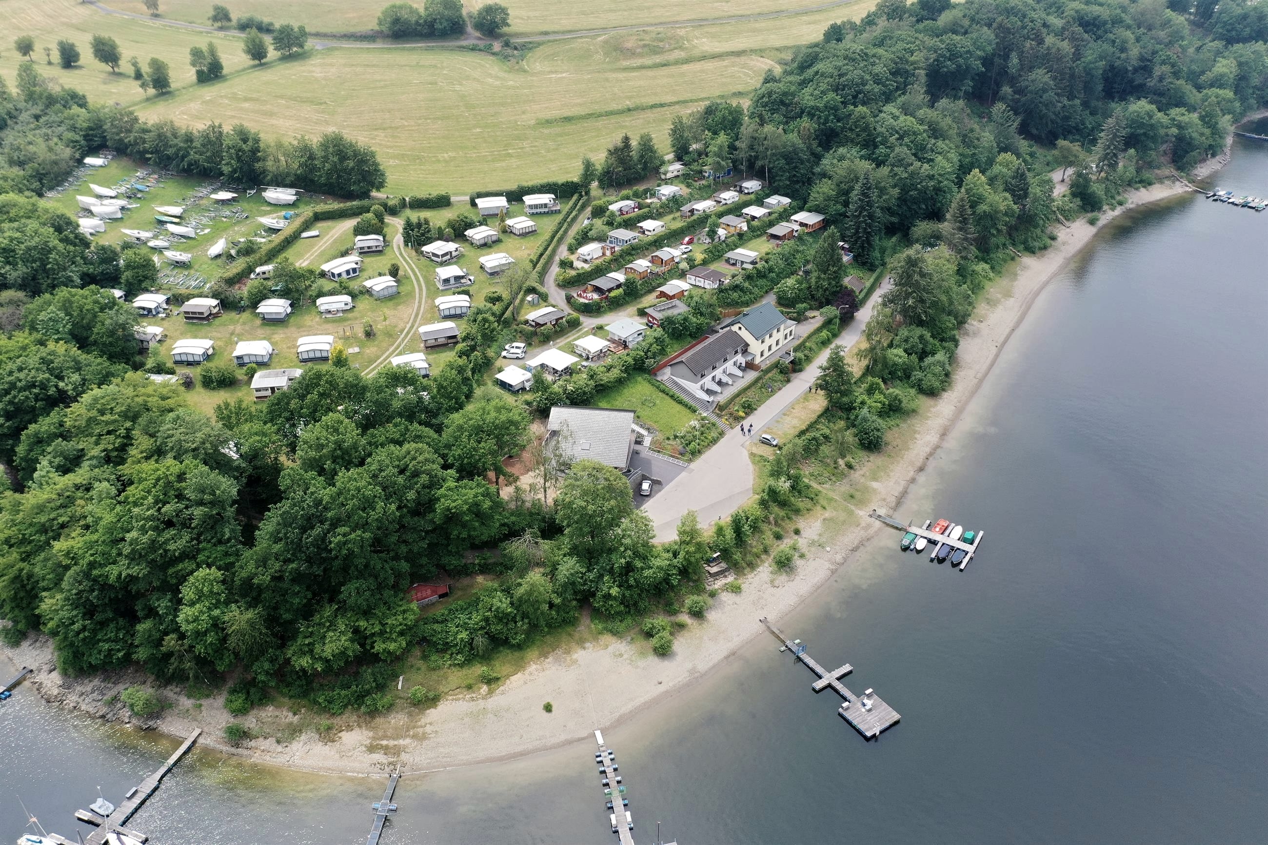 Das kostenlos nutzbare Freibad und den Anleger für die "weiße Flotte" (Rurseeschifffahrt) erreichen Sie in ca. 30 Minuten Fussweg, immer am Seeufer vorbei.