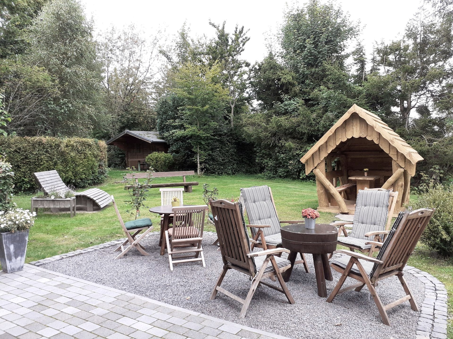 Während sich die „Kleinen“ auf unserer Spielwiese, mit Trampolin und Fußballtor, austoben, ruhen sich die „Großen“ in Sichtweite auf unseren bequemen Sitzgelegenheiten oder Liegen aus.
