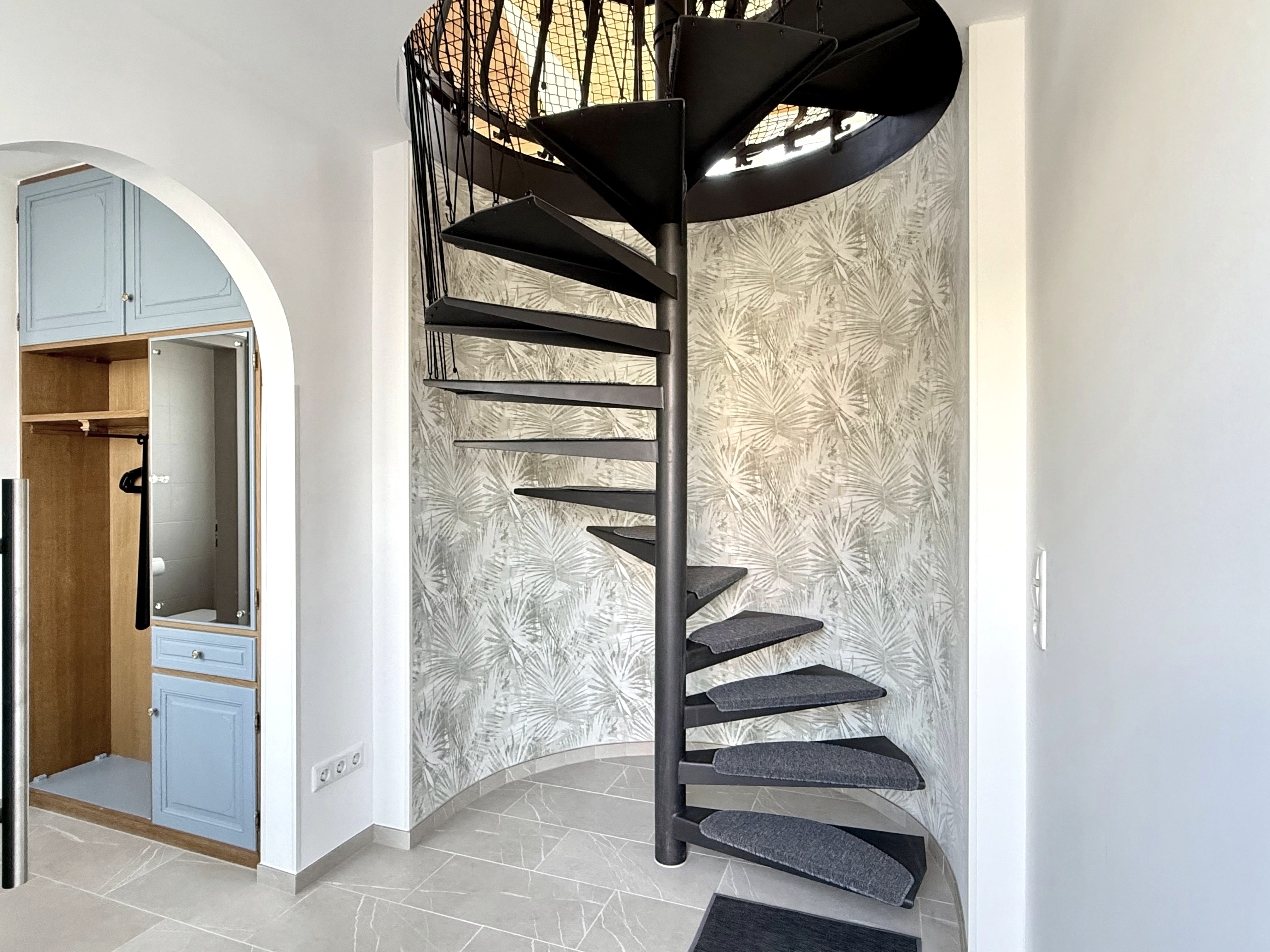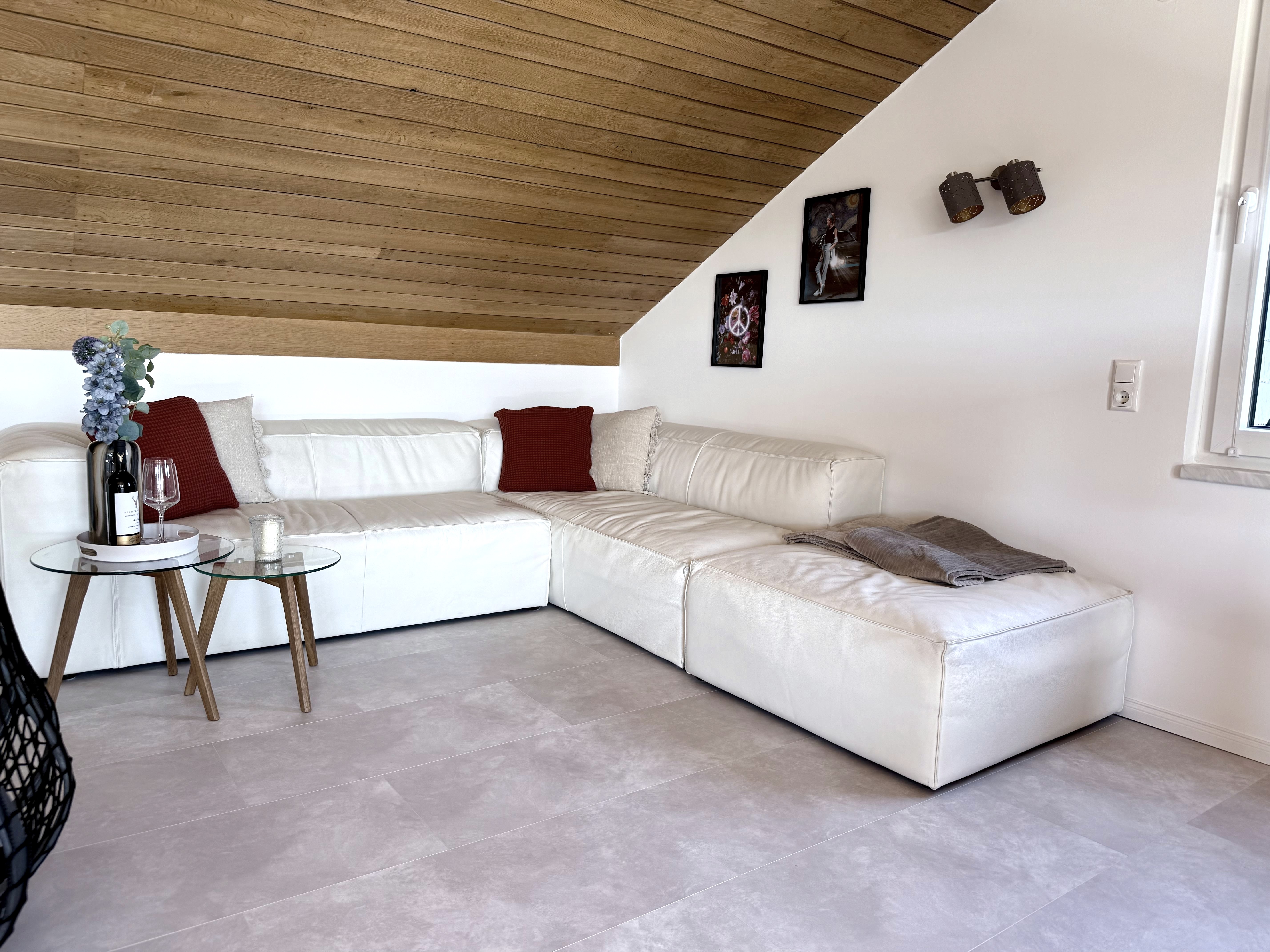 Diese charmante Ferienwohnung befindet sich im Obergeschoss des Hauses und ist über einen separaten Eingang zugänglich. Eine elegante Wendeltreppe führt Sie hinauf zu allen Räumen, die sich im Dachgeschoss des Hauses befinden.