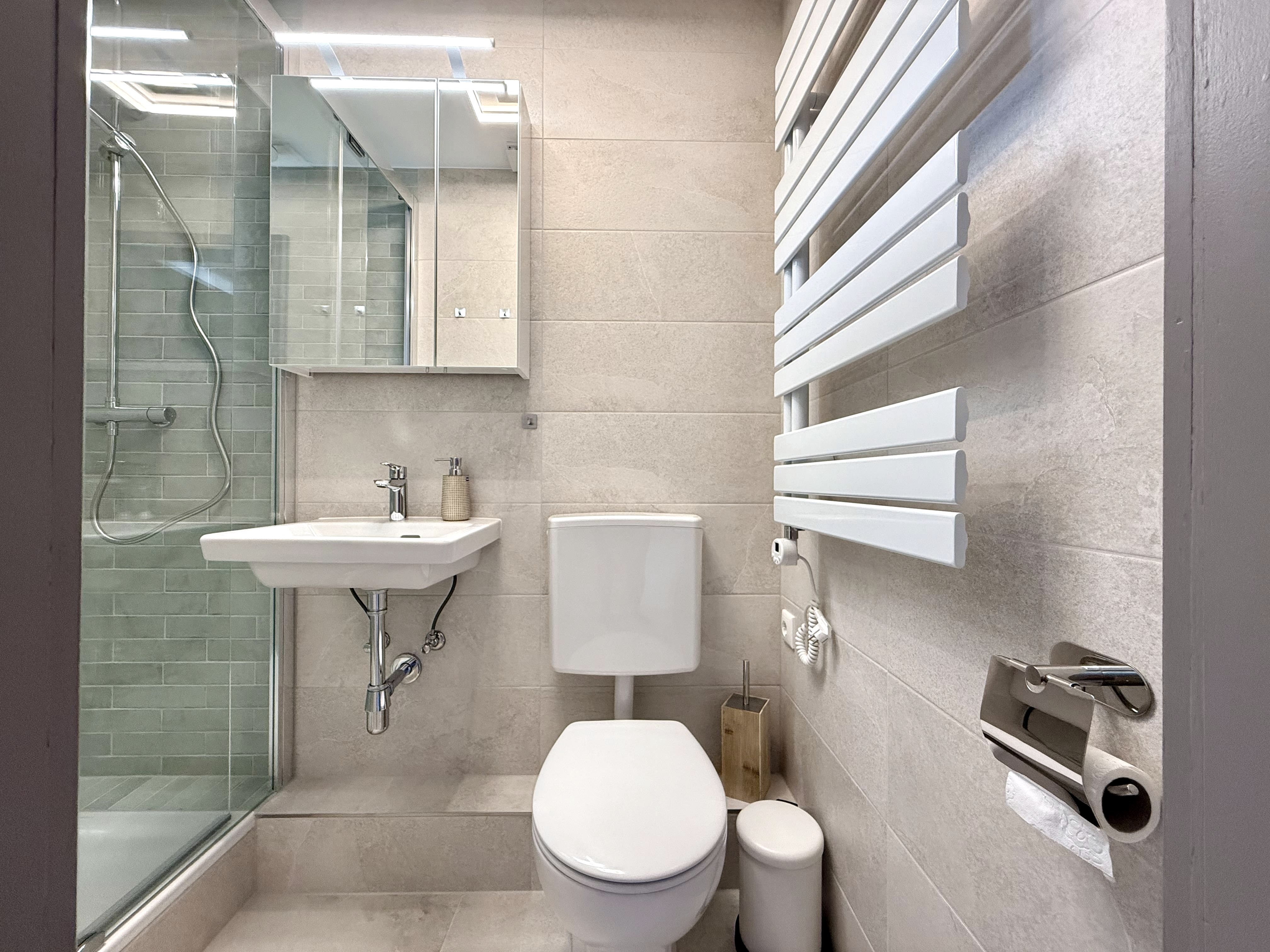 - Bad mit Dusche, WC und Waschbecken