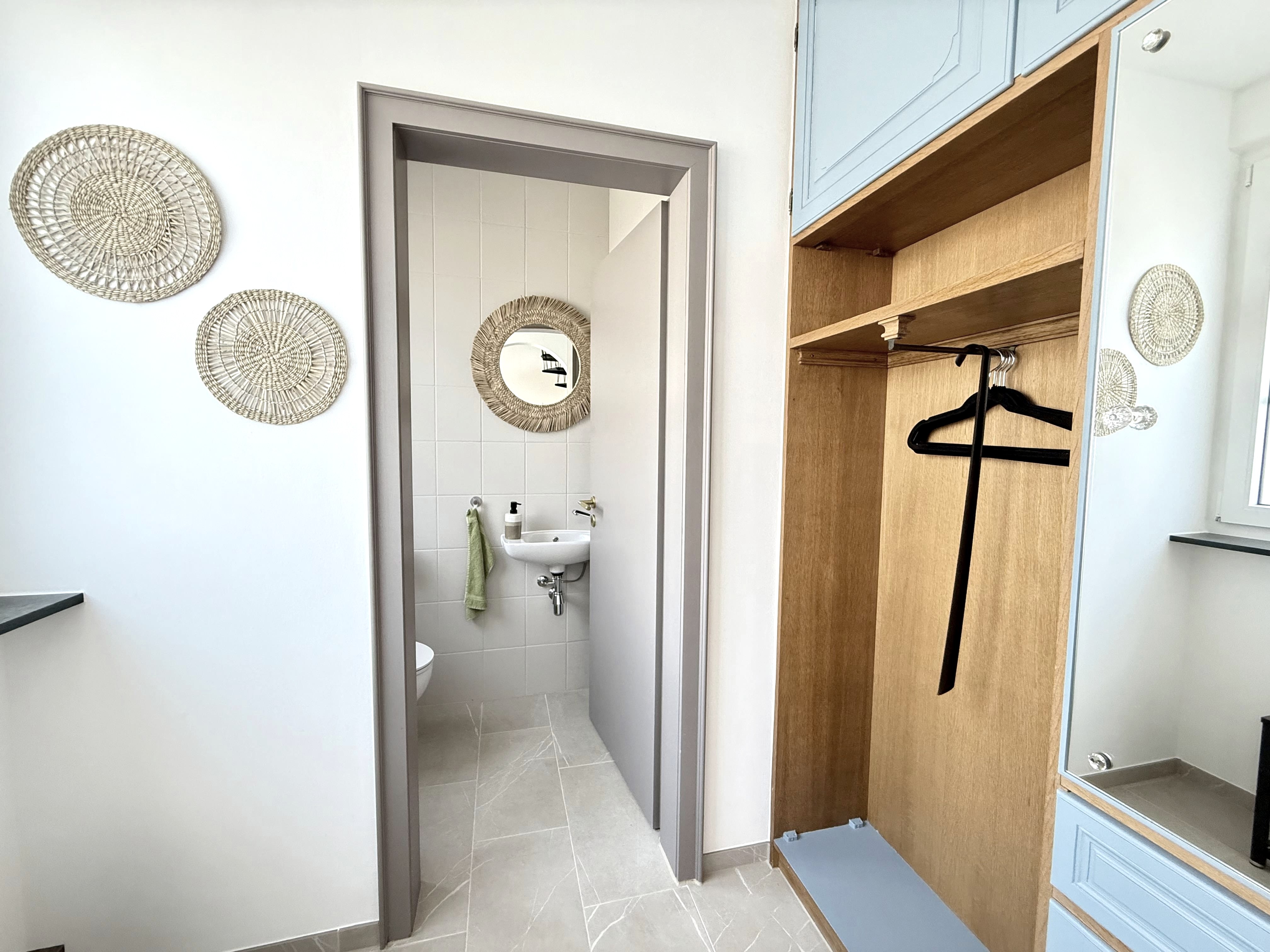 Im Erdgeschoss erwartet Sie eine Garderobe sowie ein separates Gäste-WC. Alle weiteren Räume befinden sich im Dachgeschoss.