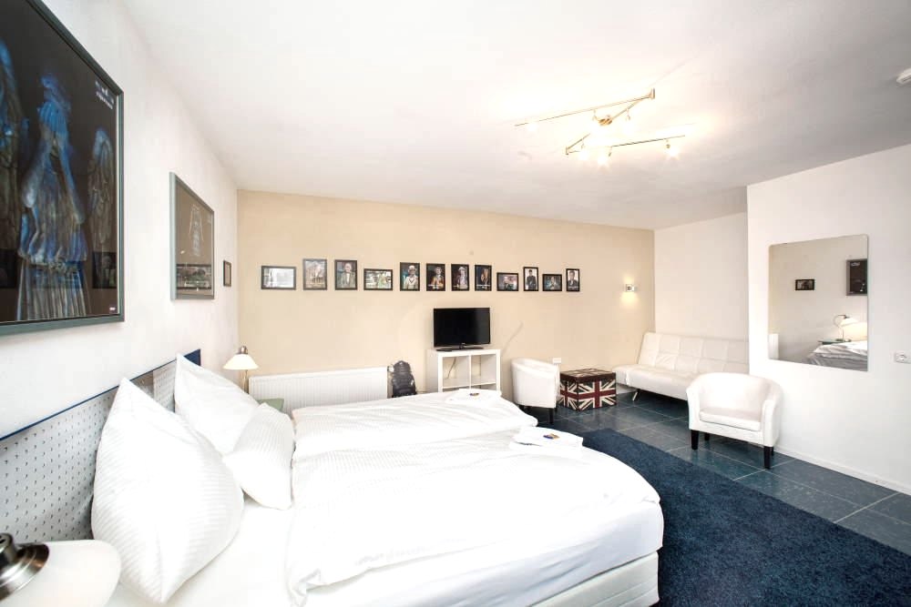 Euer Refugium mit Literaturthema, 2012 komplett saniert. Euch erwarten elf individuell eingerichtete unterschiedliche Zimmer, ein großer Garten mit Terrasse im Grünen, und ein Ort der Begegnung: Von Yoga über Spieleabende bis zum Schreibworkshop bieten wir viel Raum für Inspiration und Kreativität – und sind offen für alles, was noch kommt.