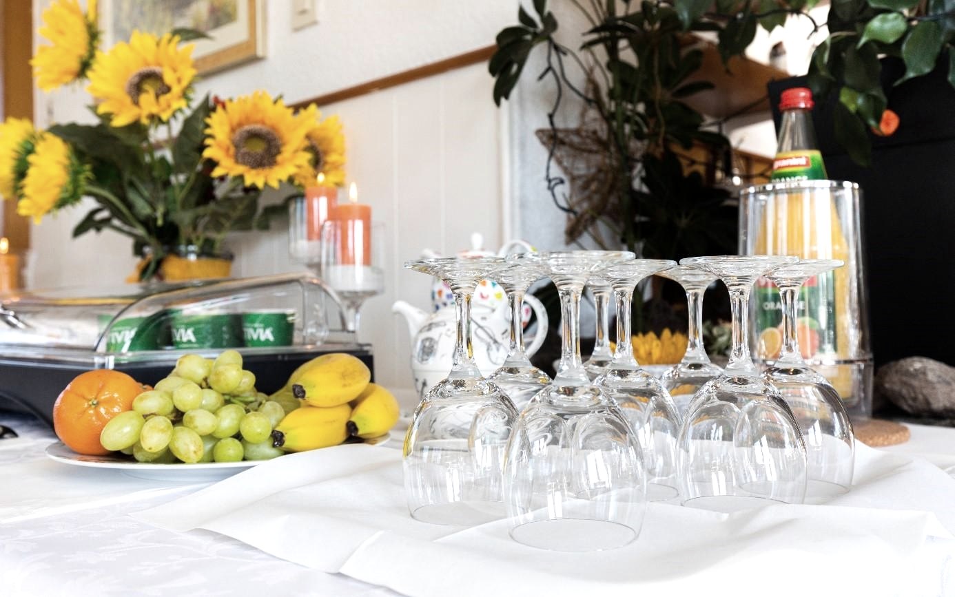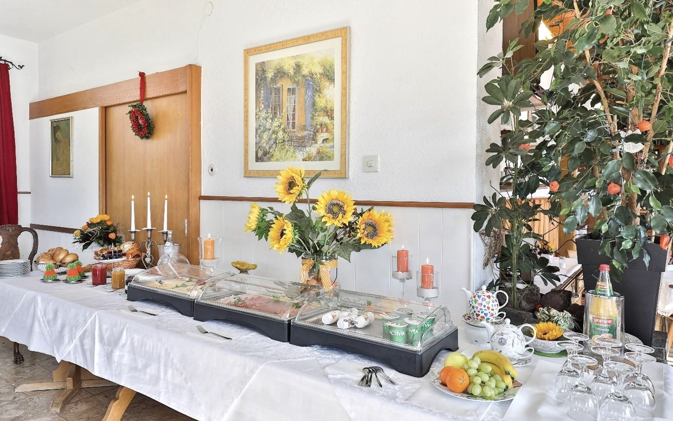 Am Morgen verwöhnen wir Sie gerne mit einem reichhaltigen Frühstücksbuffet mit Spezialitäten aus der Region.
