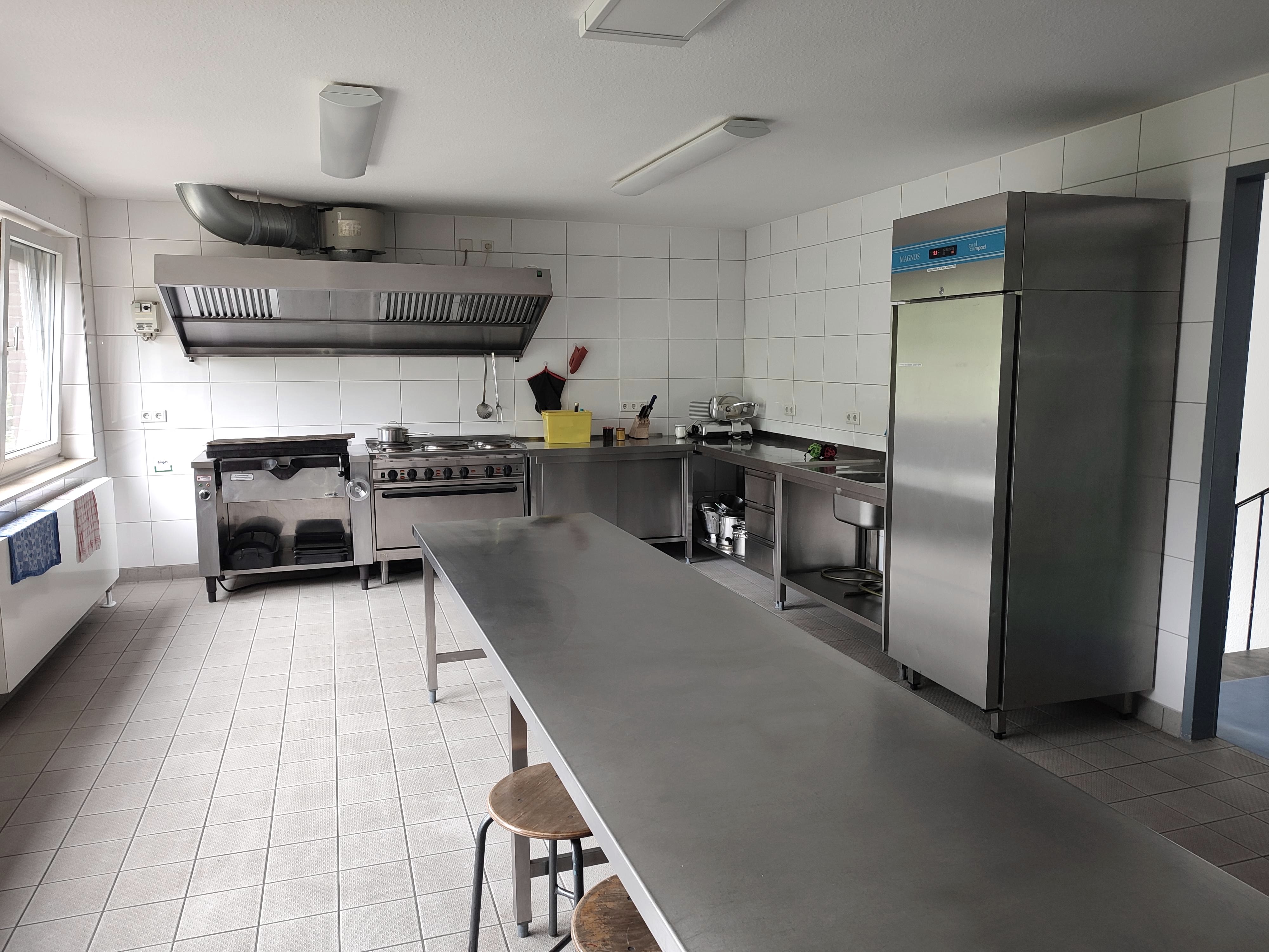 Es gibt einen großen Tages-(Tagungs-) raum, einen mittleren Tagesraum, eine Kapelle (auch als dritter Tagesraum nutzbar), einen großen Garten, Tischtennisplatte, Kickertisch, Feuerstelle, Schwenkgrill, Parkplätze vor dem Haus. Unsere Küche ist mit Spülmaschine, 5- Flammen-Herd mit Backofen, Kippbratpfanne und großem Kühlschrank eingerichtet.