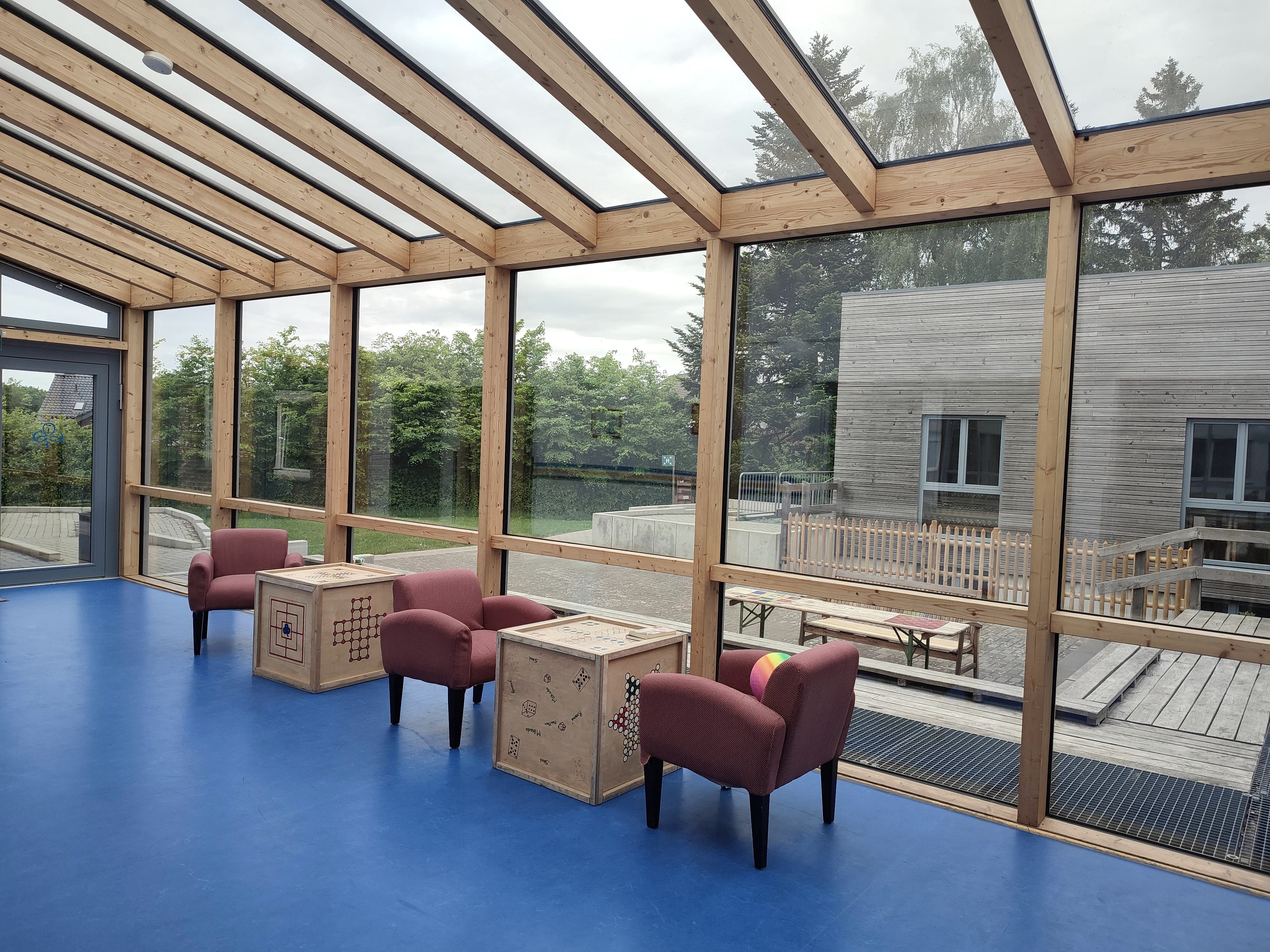 Unser Haus ist 100% barrierefrei, es verfügt über zwei Etagen (Erdgeschoss und Untergeschoss), die über Rampen erreichbar sind. Auch die Küche ist rollstuhlgerecht eingerichtet (unterfahrbarer, großer Arbeitstisch in der Mitte des Raumes). Die Außenanlagen sind ebenfalls über Rampen für alle begeh- und befahrbar.