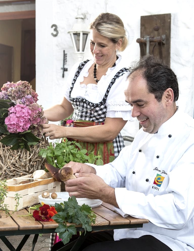 Gastgeber der Regionalmarke EIFEL Historisches Landgut aus dem 19. Jahrhundert am Ortsrand von Roetgen, umgeben von Wiesen mit weiter Aussicht. In unserem Familienbetrieb bieten wir eine feine, vielfach ausgezeichnete regionale Küche mit Produkten aus eigener Landwirtschaft, Jagd und dem eigenen Kräutergarten sowie ein hervorragendes und sehr umfangreiches Weinangebot. Unsere 7 Zimmer sind im Landhausstil eingerichtet mit neuen, modernen Bädern. Beliebt sind unsere Gourmetarrangements für 1 bis 3 Tage. Der vielbesuchte Eifelsteig liegt nur wenige hundert Meter entfernt.
