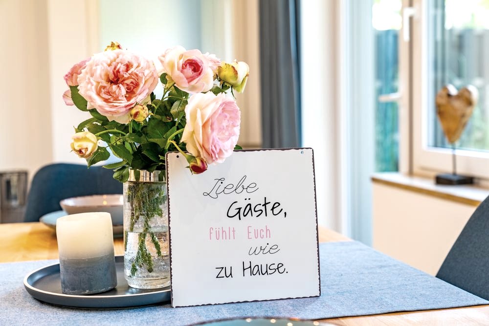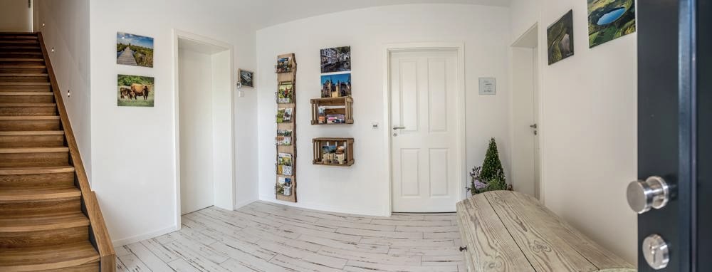 Bei Ihrer Ankunft erwarten Sie frisch bezogene Betten, frische Handtücher sowie ein kleines Naturset (Seife, Spülmittel, Müllbeutel, Spültuch und Schwamm) für Küche und Bad sowie weitere kleine Dinge für einen guten Start in den Urlaub. Im einladenden Empfangsraum stellen wir Ihnen vielfältige Broschüren für Ihre Ausflugsziele zur Verfügung und auch die Kleinsten finden hier ein paar Dinge zum Spielen. Die Ferienwohnung verfügt über kostenlose Stellplätze vorm Haus und bei Bedarf bieten wir Ihnen die Möglichkeit, Ihre Fahrräder in der Garage sicher für die Nacht unterzustellen.