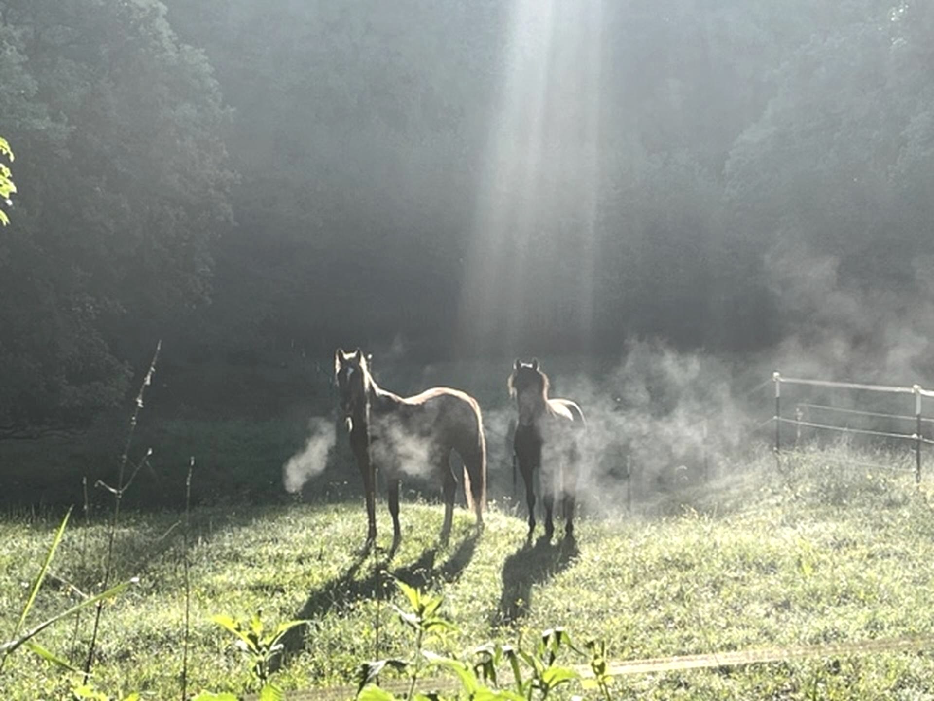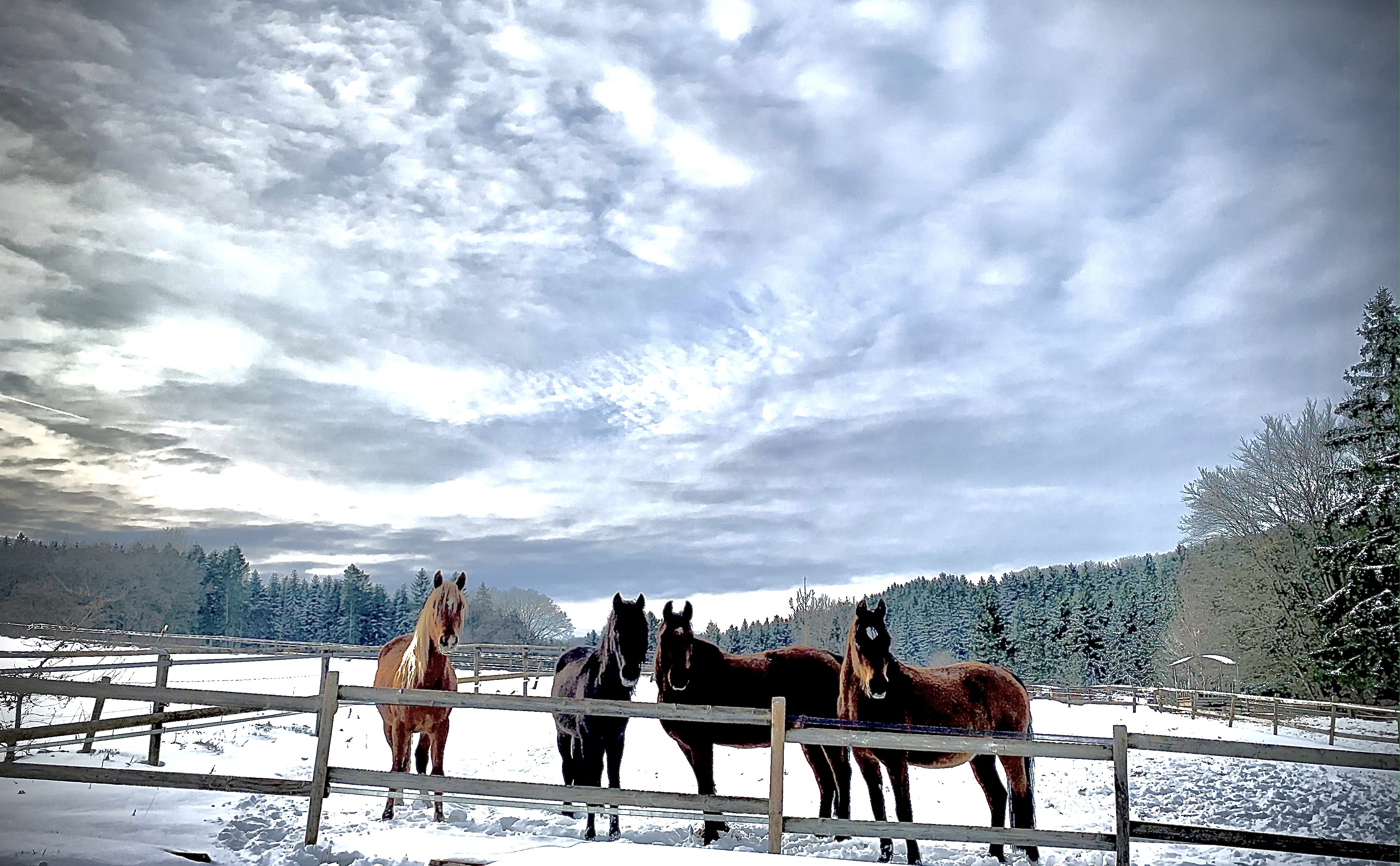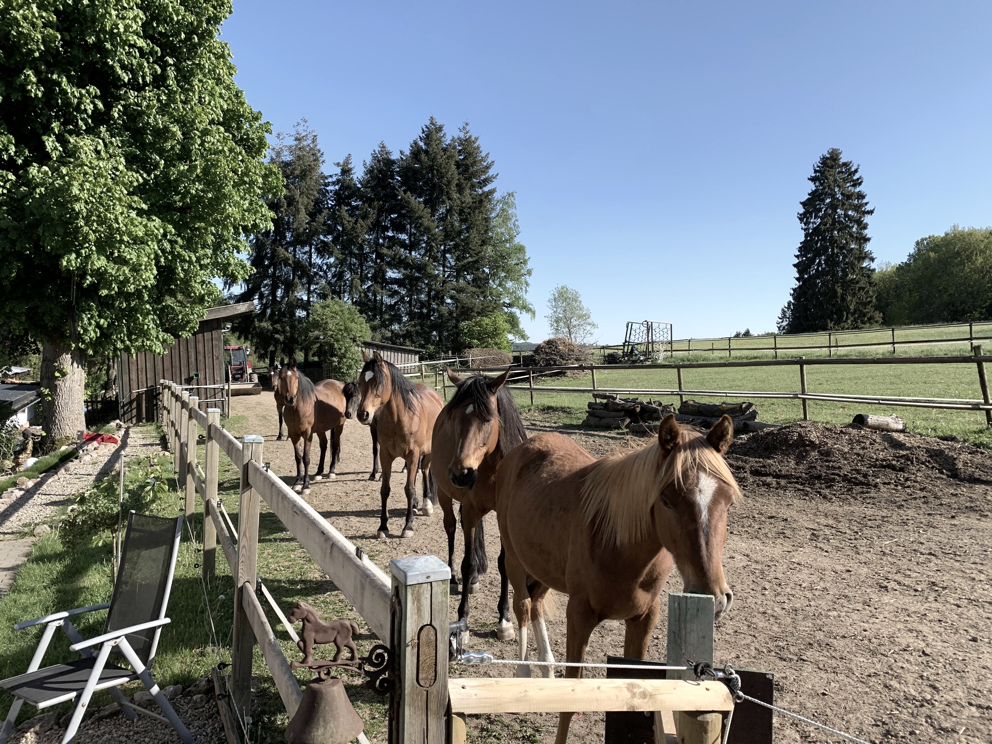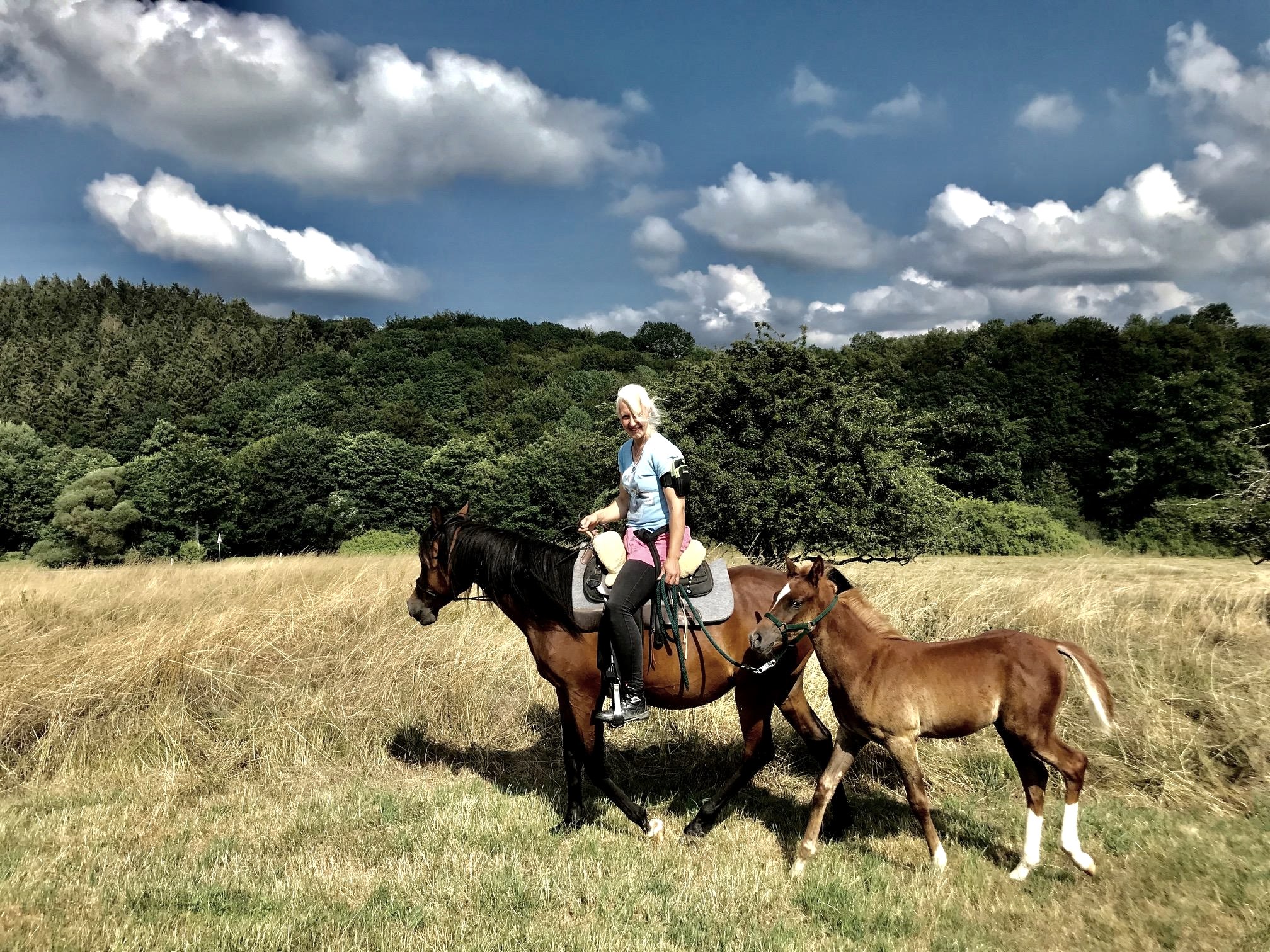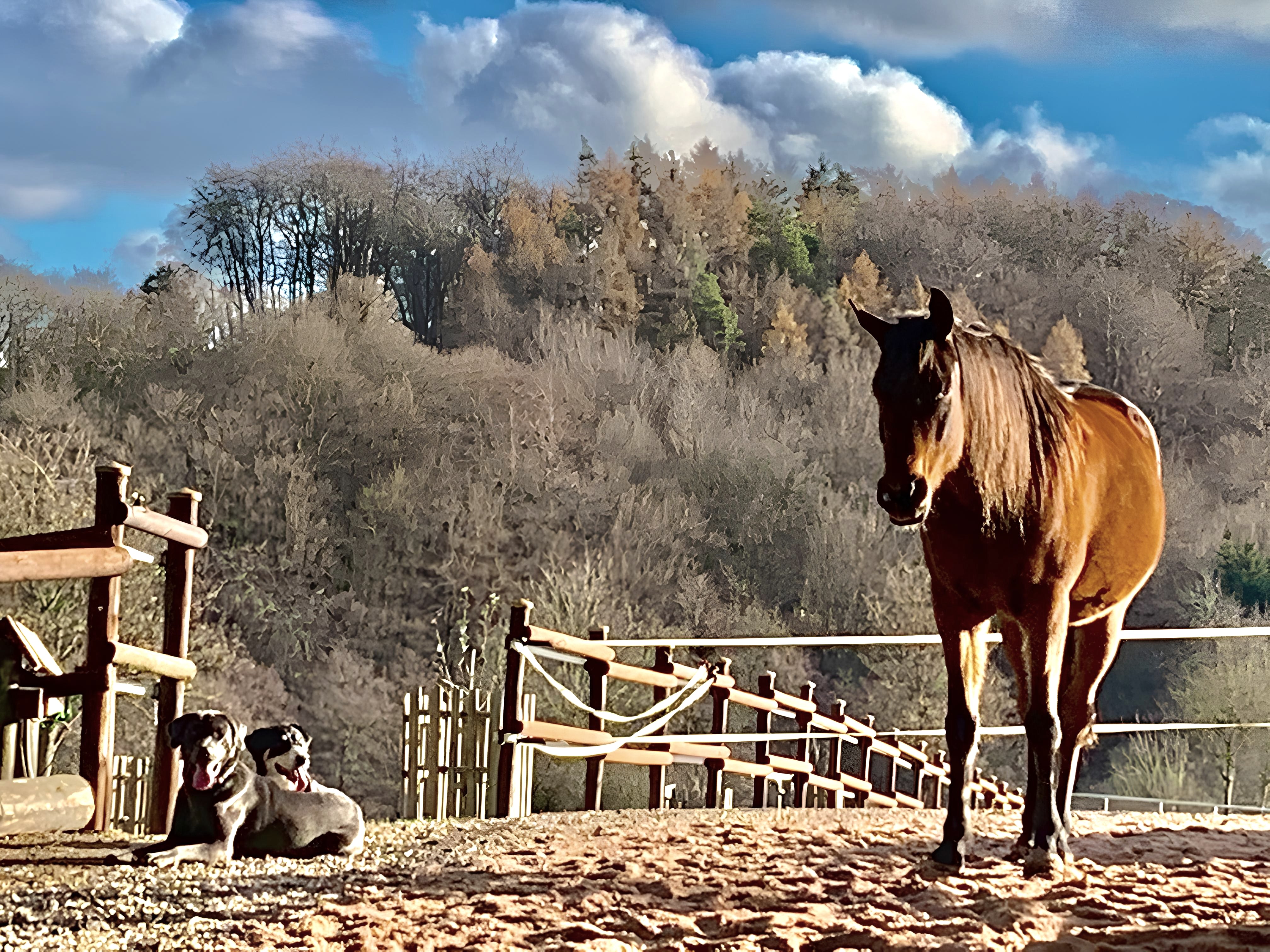Sollten Sie mit Ihrem Pferd bei uns Urlaub machen wollen ist dies in Rücksprache und Aufpreis möglich. Es steht Ihnen unser Hauseigener Reitplatz (ca. 18 x 25 m), ein Wiesenpaddock mit einem Unterstand und Eifel-Heu zur Verfügung. Das wunderschöne Ausreitgelände mit vielfältigen Möglichkeiten wartet direkt vor der Haustüre auf Sie.