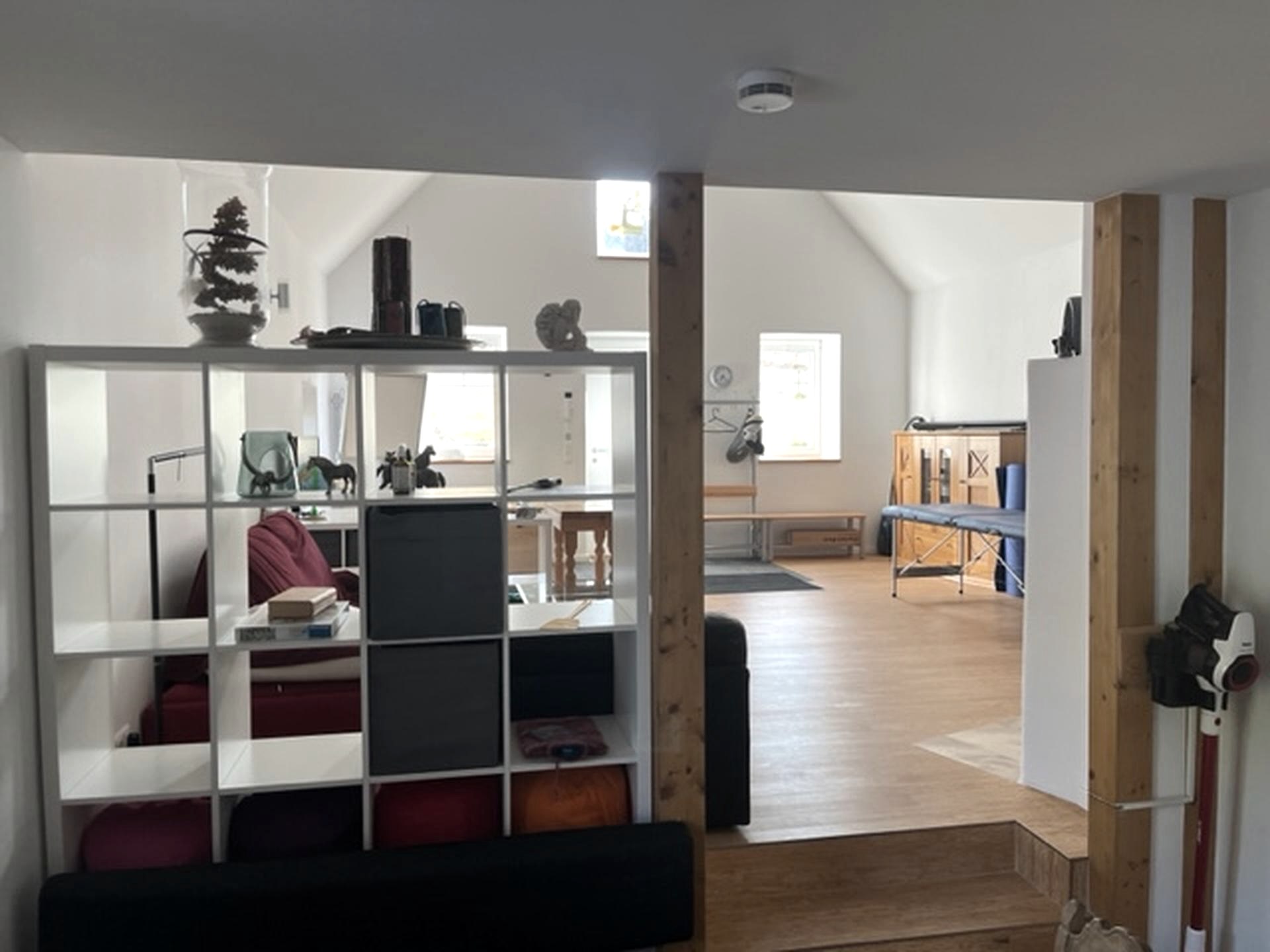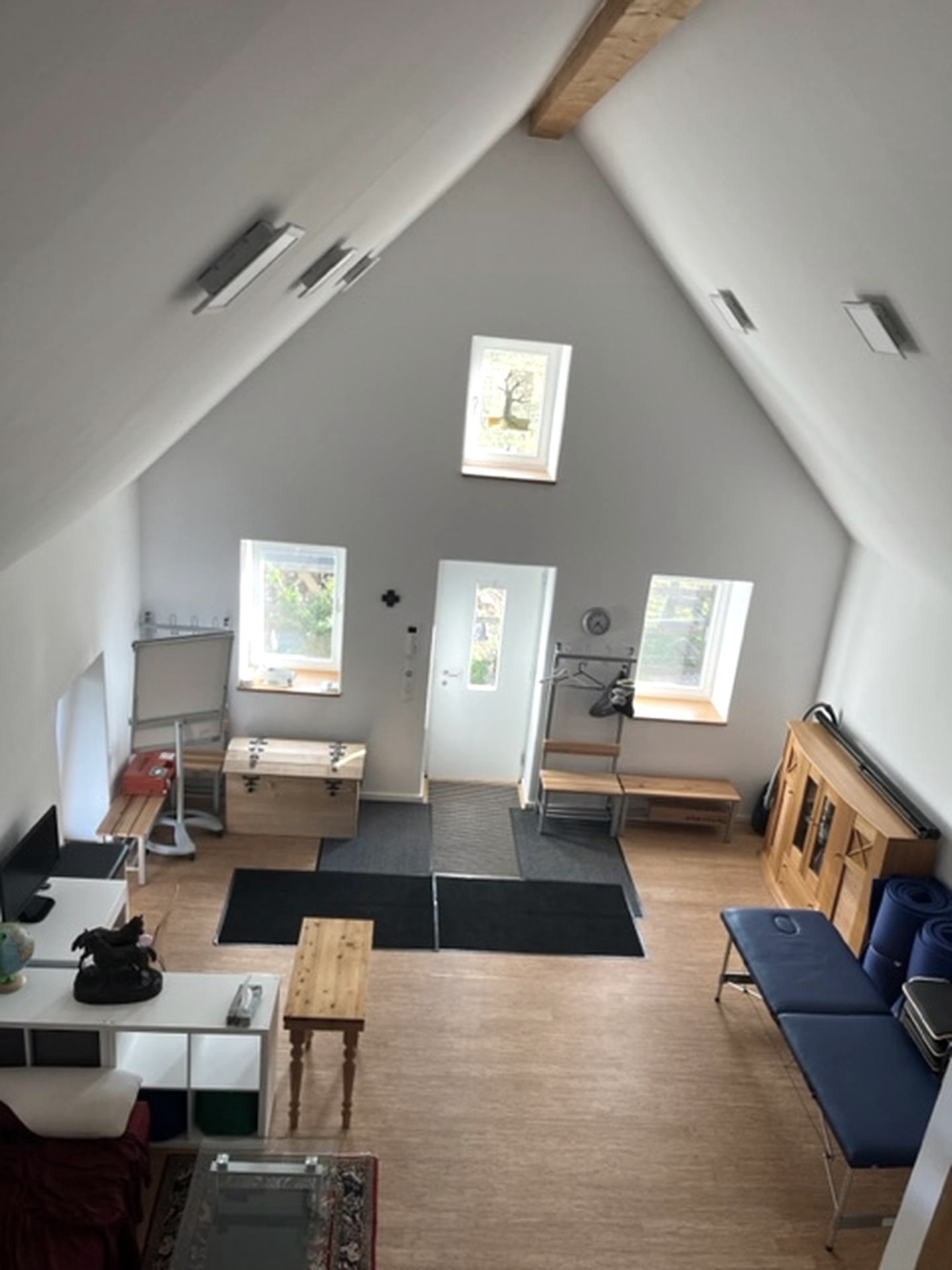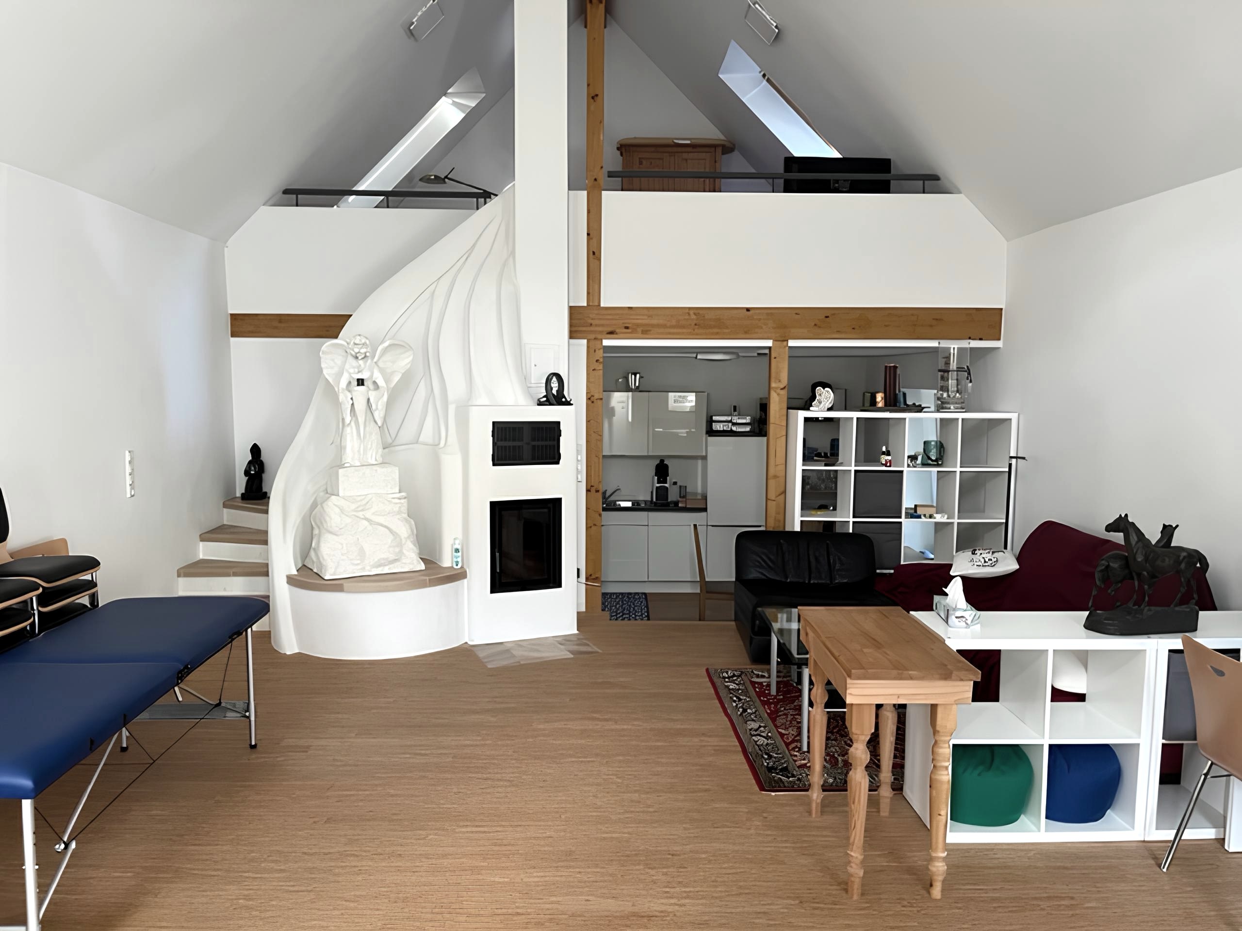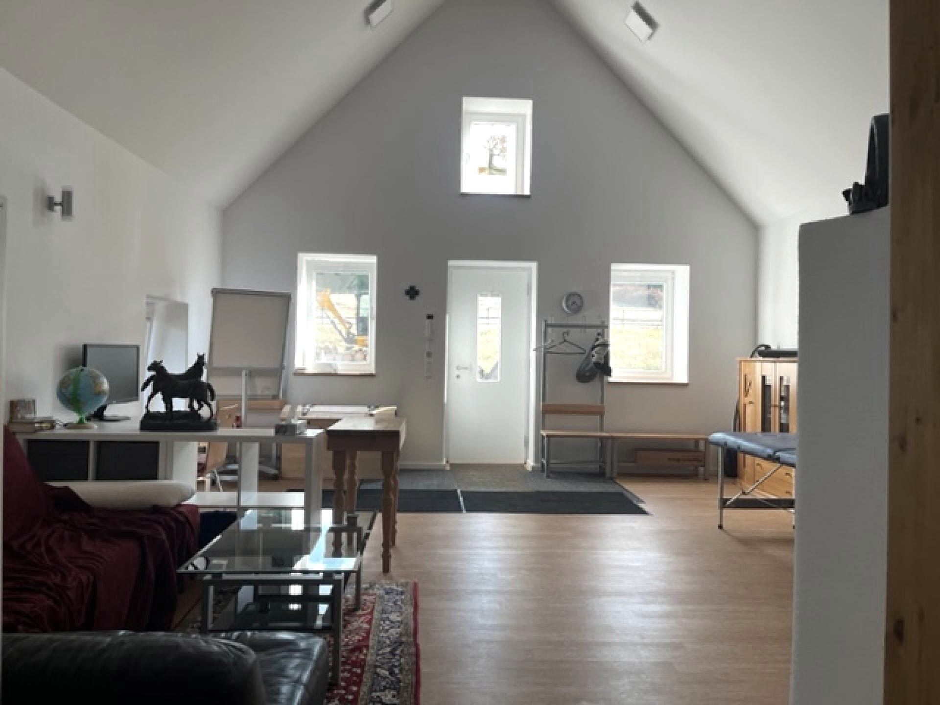 Durch die offene Bauweise haben wir einen lichtdurchfluteten Raum geschaffen der mit Bambusparkett und Fußbodenheizung ausgestattet ist. Eine gemütliche Couch und Sessel laden zum ausruhen und entspannen ein.