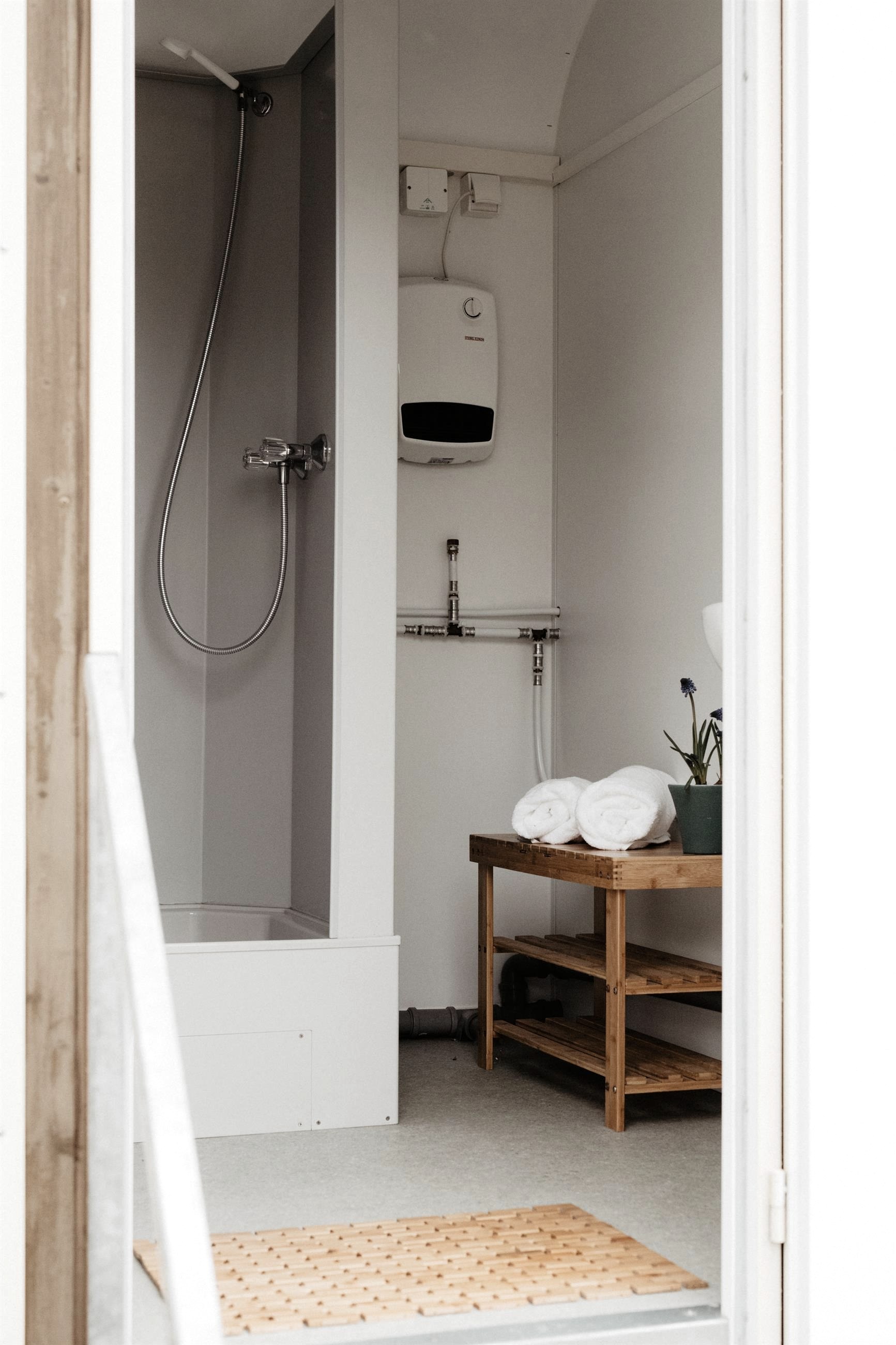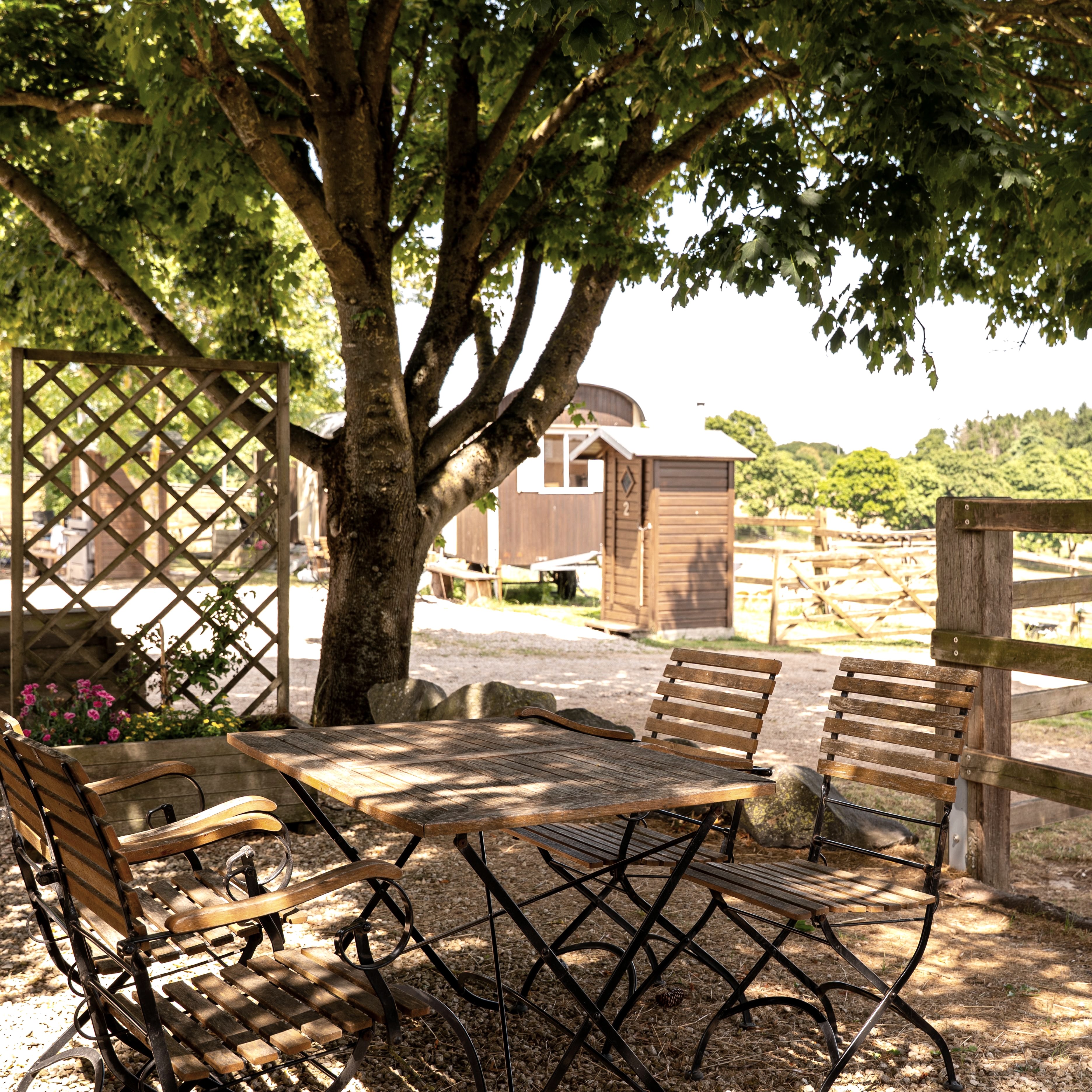 Bequeme, überraschend bezaubernde Wohn- und Schlafmöglichkeit für 4 Personen pro Bauwagen. Neben einem Doppelbett und einer Sitzecke, die mit wenigen Handgriffen zum zweiten Doppelbett umfunktioniert werden kann, gehört auch eine kleine Küche dazu. Alle Bauwagen sind mit einer Heizung ausgestattet. Dusch- und Waschmöglichkeiten sowie schwedischen Bio-Komposttoiletten sind ebenfalls vorhanden.