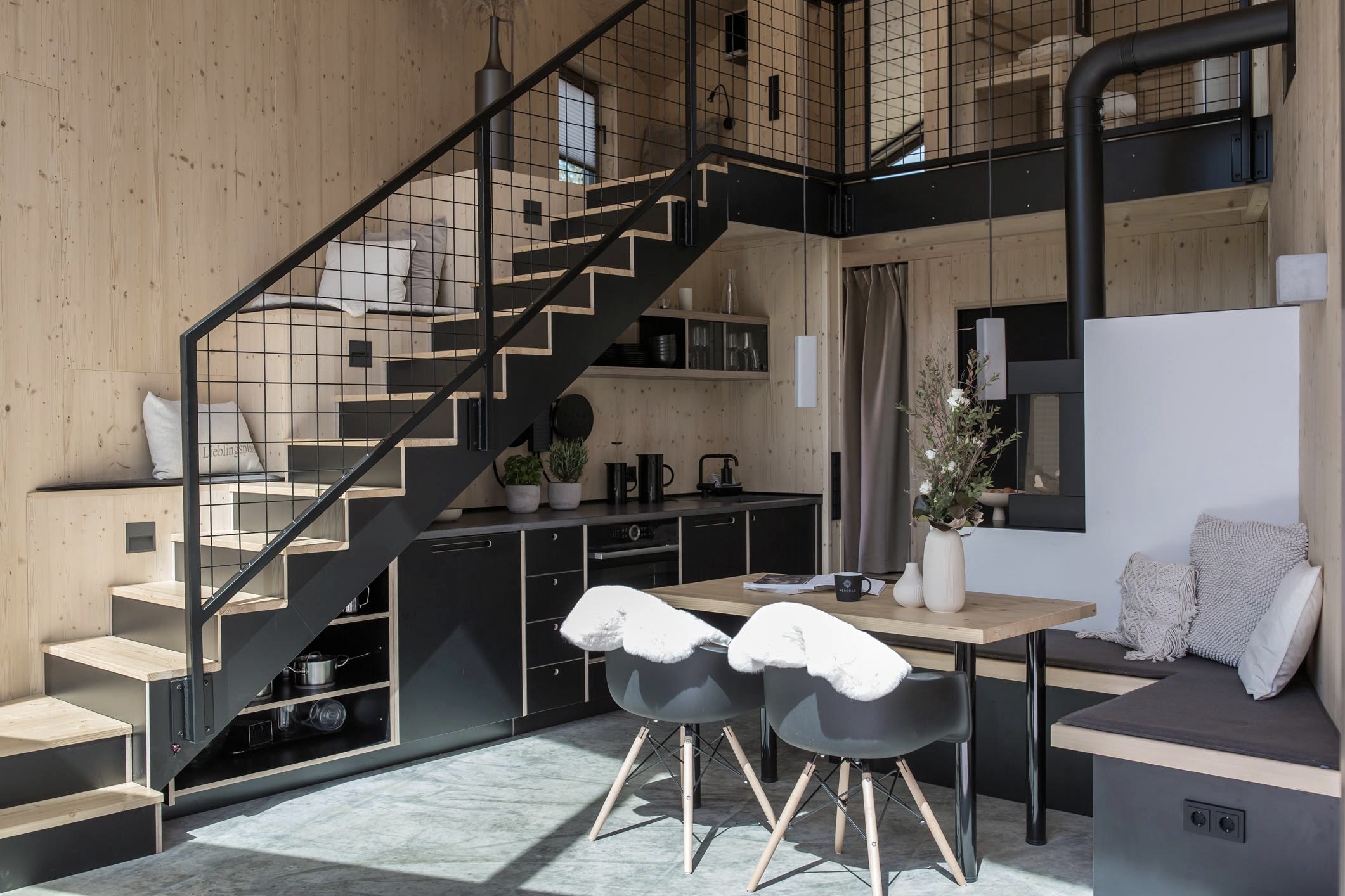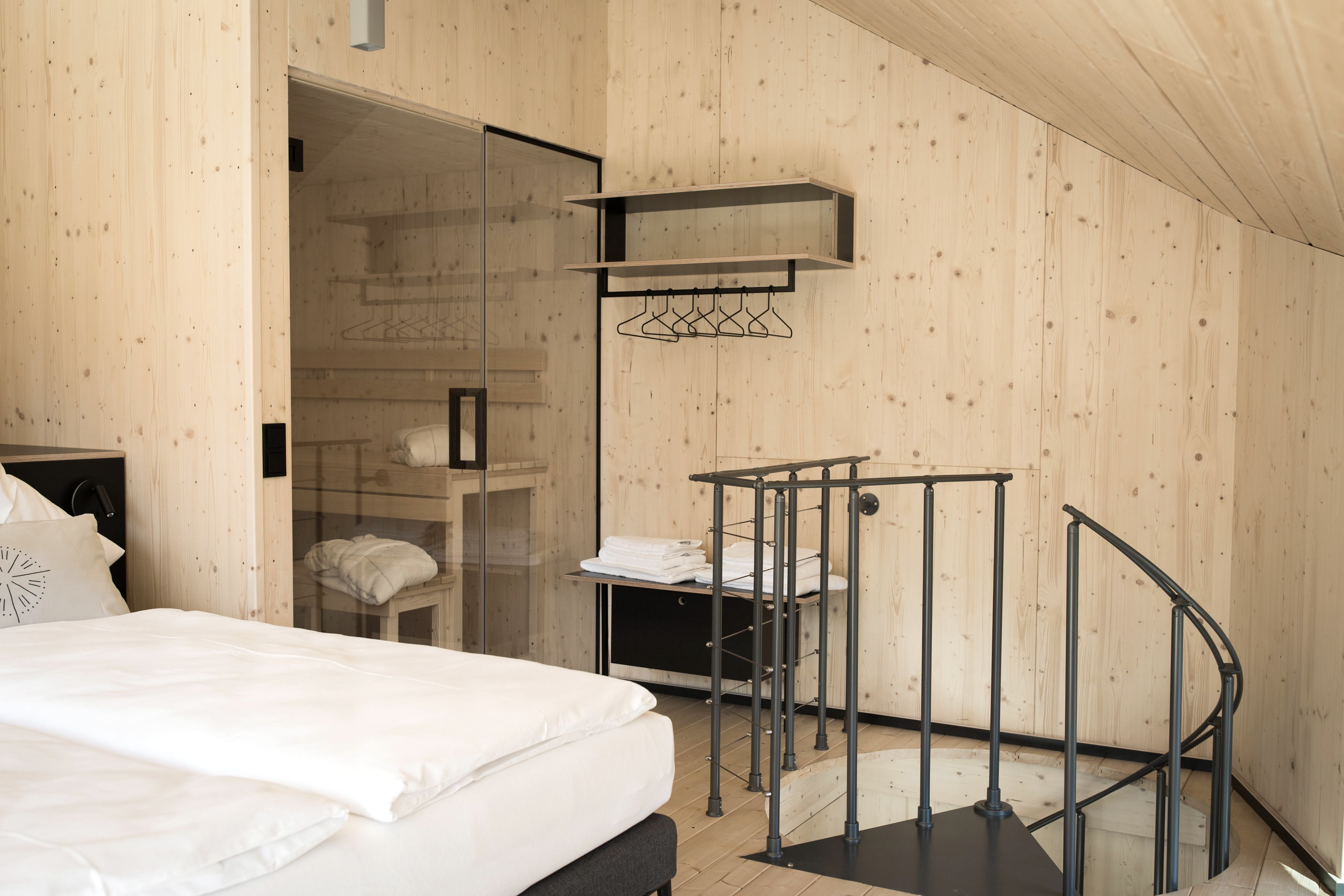 - 9 mal 1-2 Personen Haus Style, 6 davon sind mit eigener Sauna. Alle haben eine Wohnfläche von 25 qm. 4 von den Häusern sind mit Hund erlaubt (max. 1)