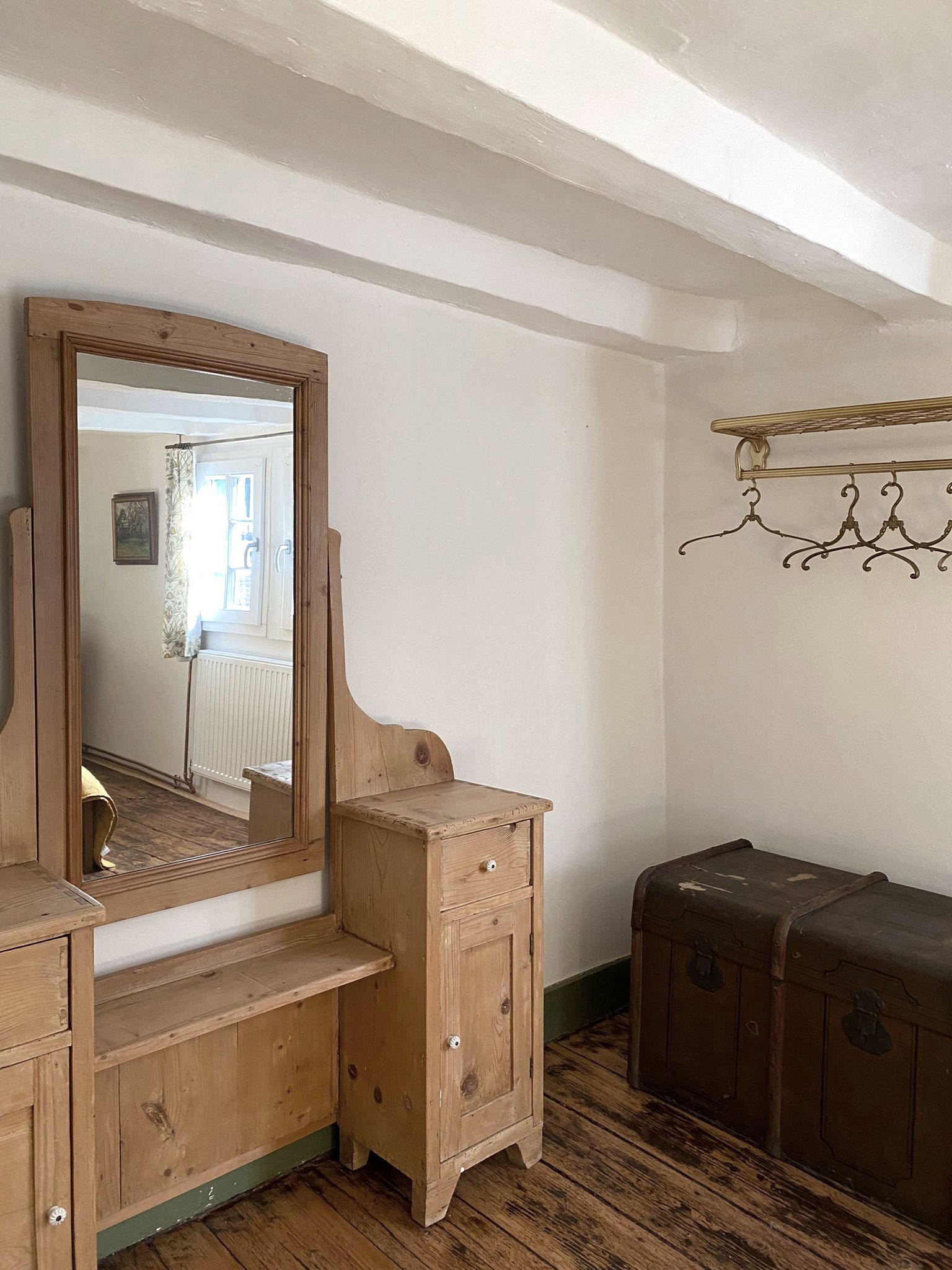 Niedrige Decken, schiefe Wände und Fußböden und steile Treppen machen den Charakter eines Fachwerkhauses aus. Achten Sie auf Ihren Kopf! Unser kleiner Hof bietet 75qm Wohnfläche. Im Erdgeschoss befinden sich Küche, Wohnzimmer mit Holzofen und Bad. In der ersten Etage befinden sich 3 Schlafzimmer. Eines verfügt über ein Doppelbett, die beiden anderen bieten jeweils ein Einzelbett. Wir empfehlen den Hof für Kinder unter 4 Jahren nicht.