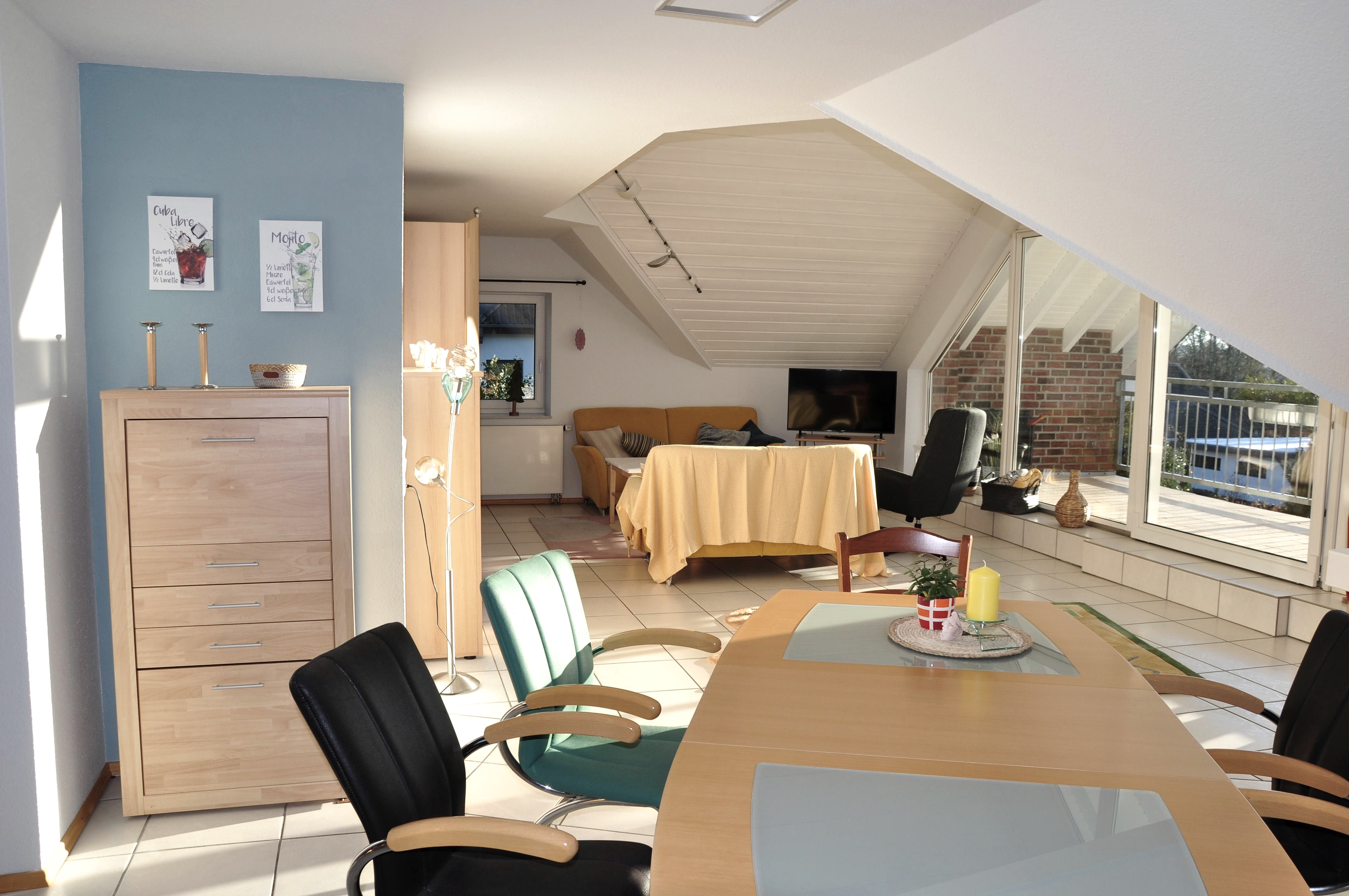 Das gemütliche Wohn-/Esszimmer mit Ausgang auf den Balkon verfügt über IP-TV und über eine Stereo-Anlage mit Bluetooth.