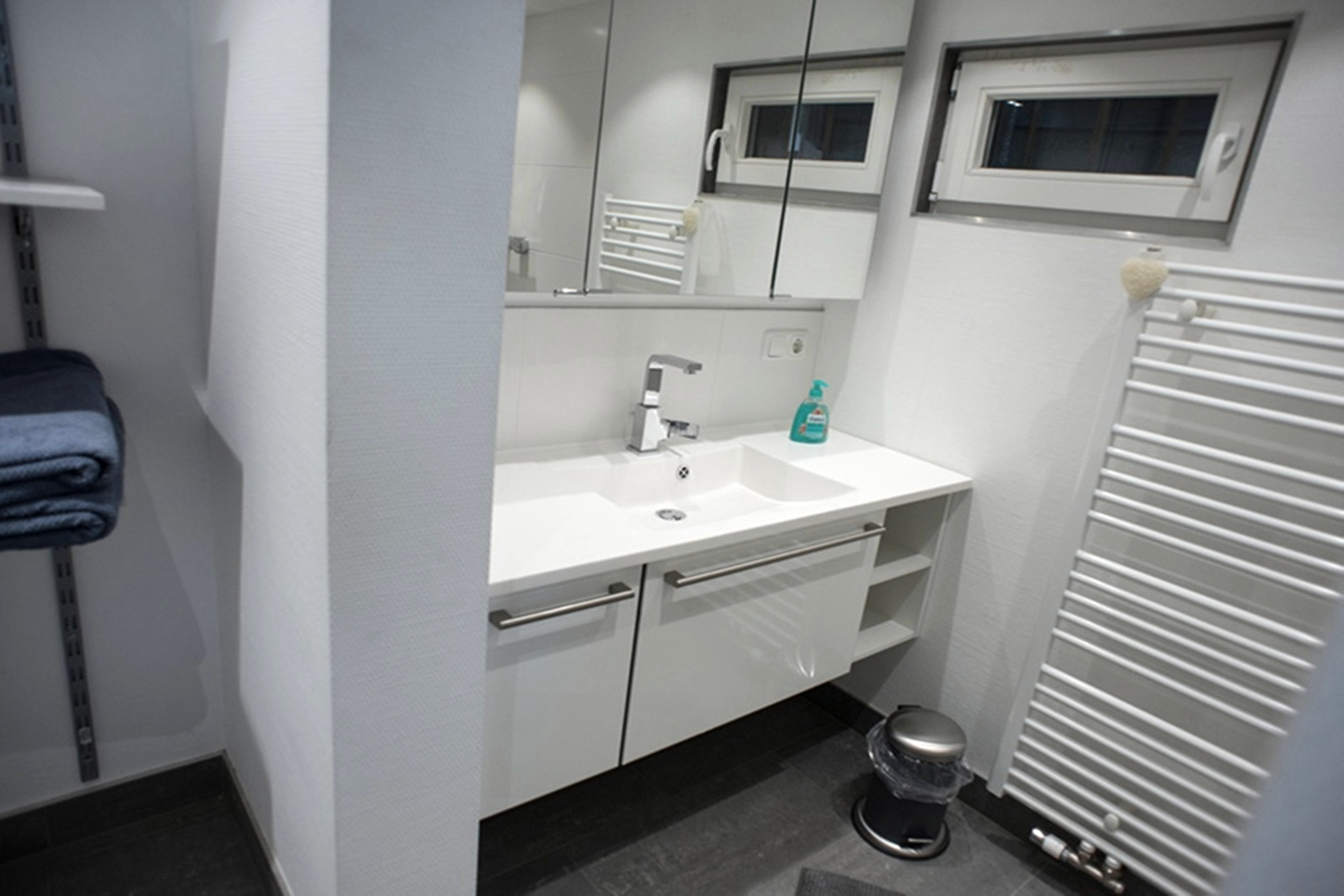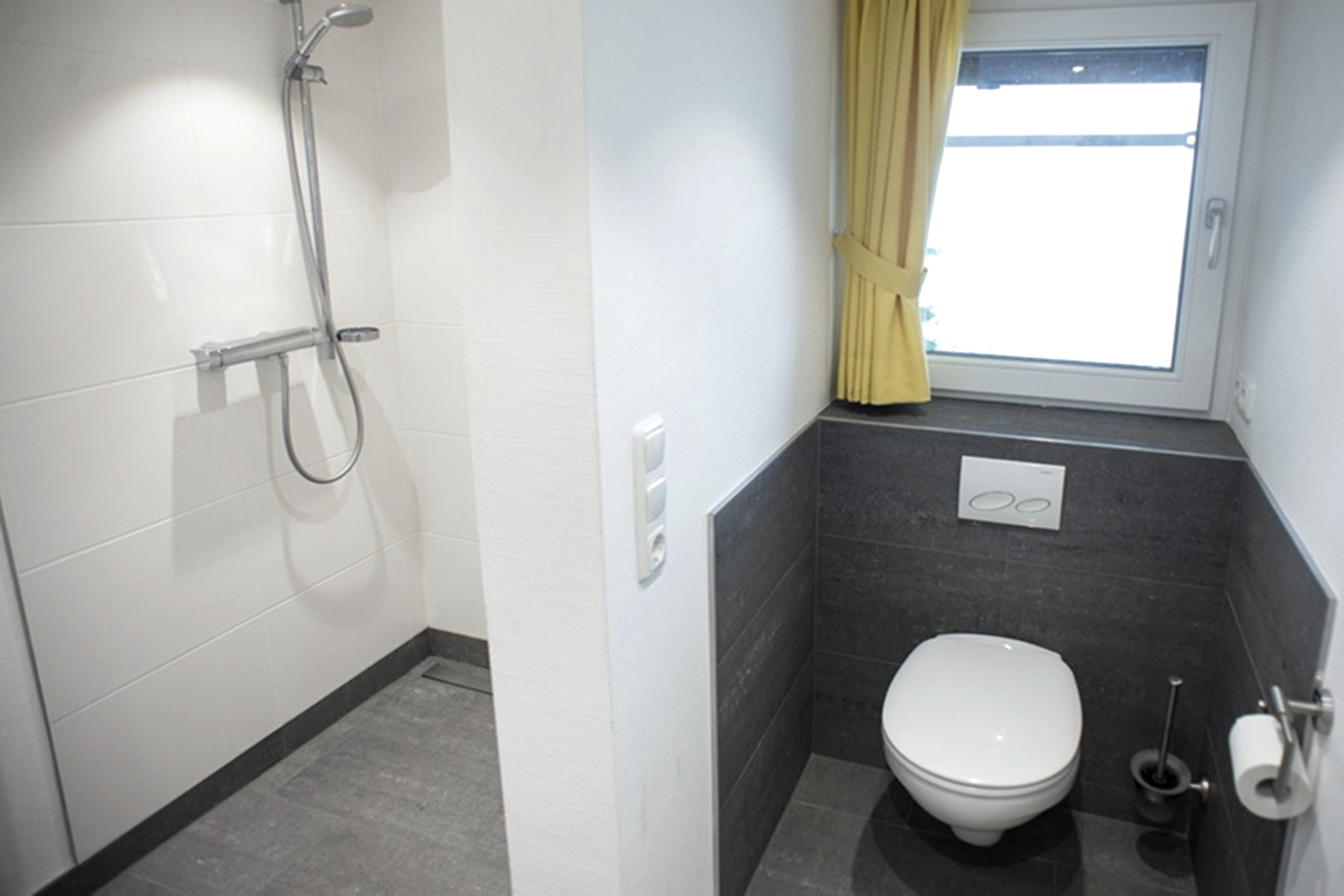 - Bad mit Dusche, Waschbecken, WC und Fön / UG