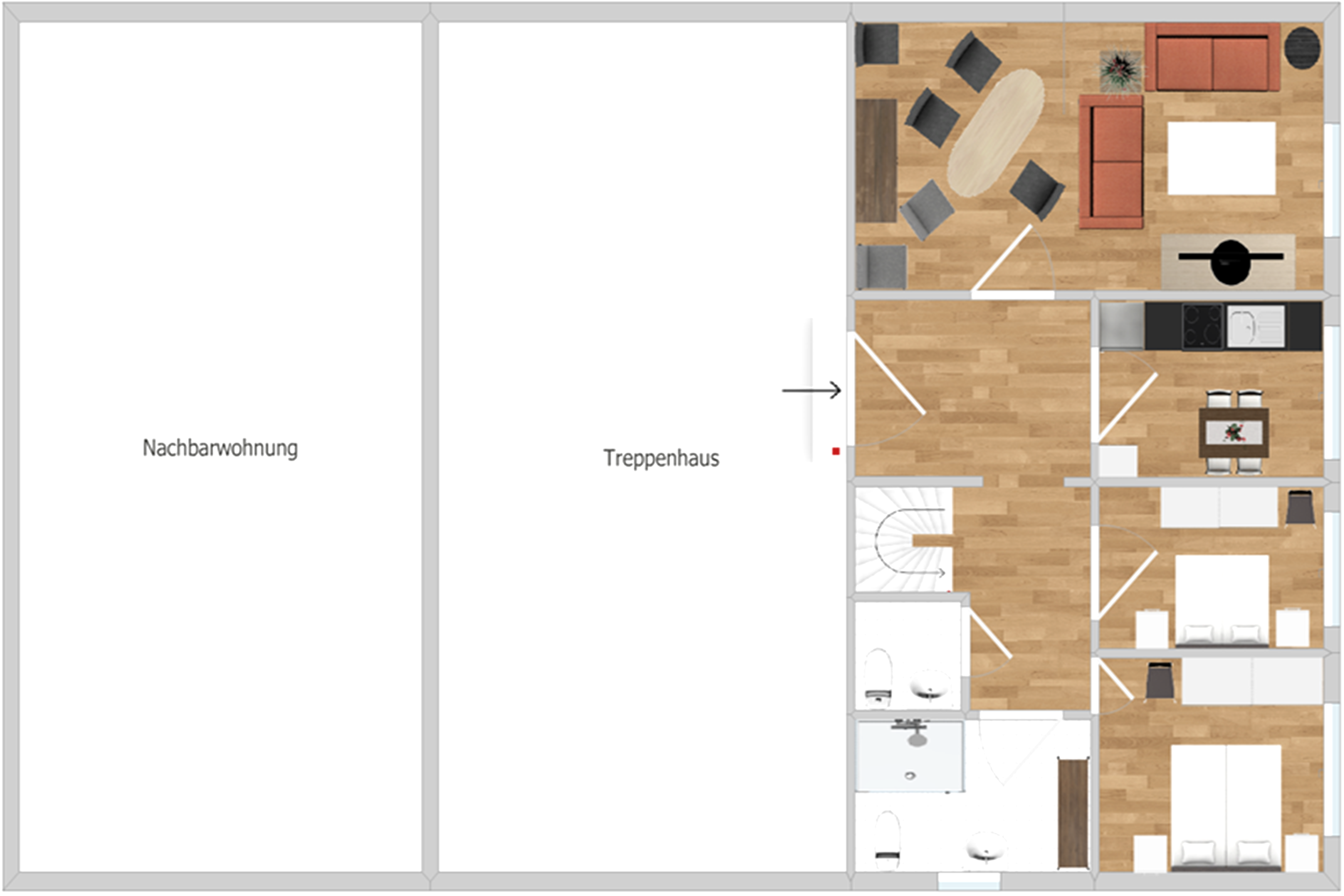 Es handelt sich um eine Maisonette Wohnung, mit einer Innentreppe für das Obergeschoss.