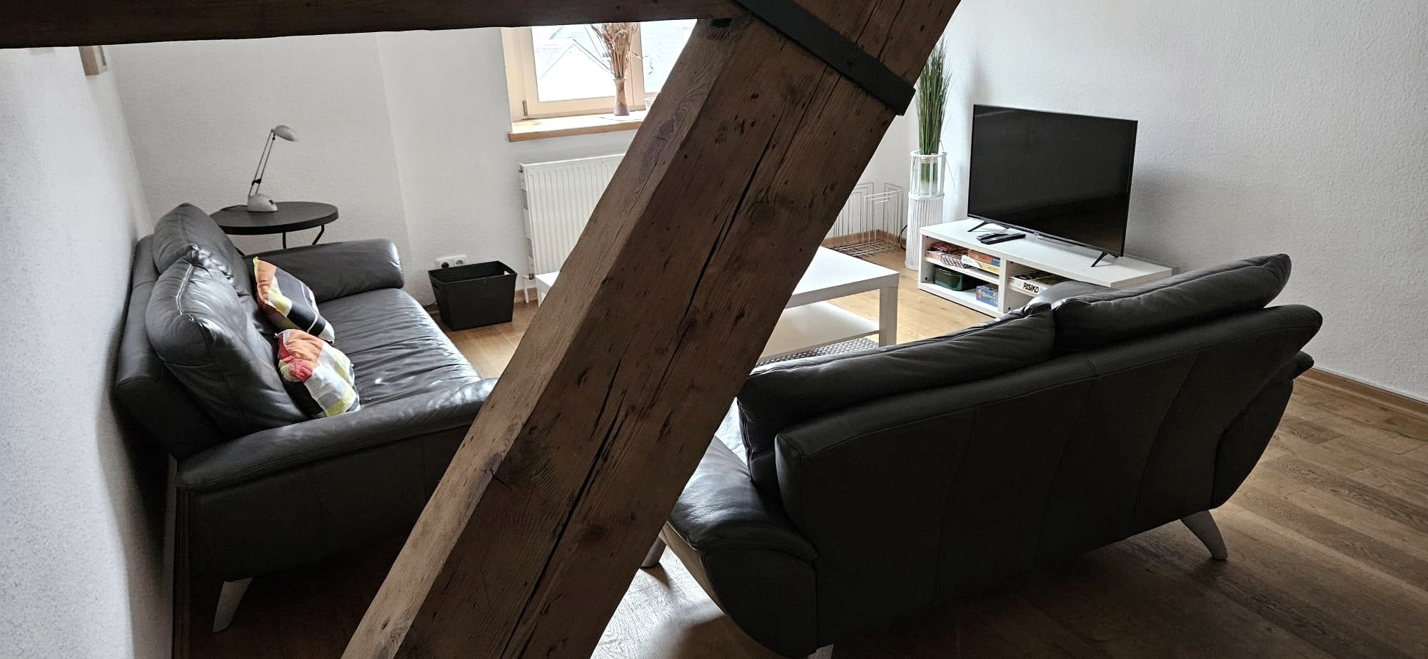 Die Wohnung befindet sich in einem denkmalgeschützten Bruchsteinhaus.